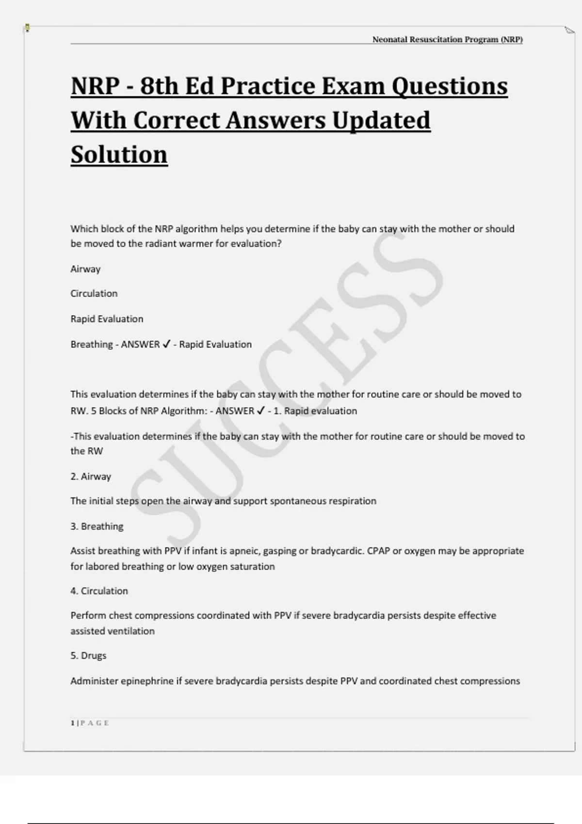NRP - 8th Ed Practice Exam Questions With Correct Answers Updated Solution