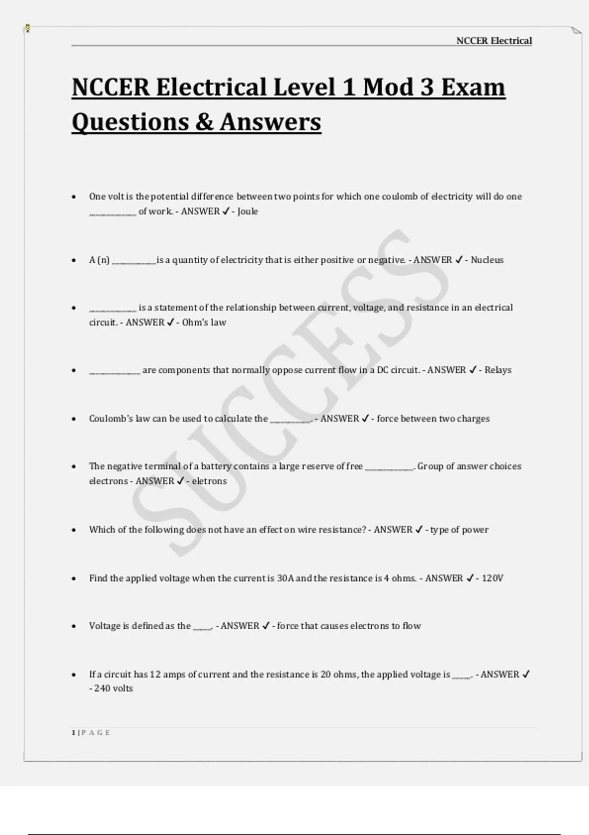 NCCER Electrical Level 1 Mod 3 Exam