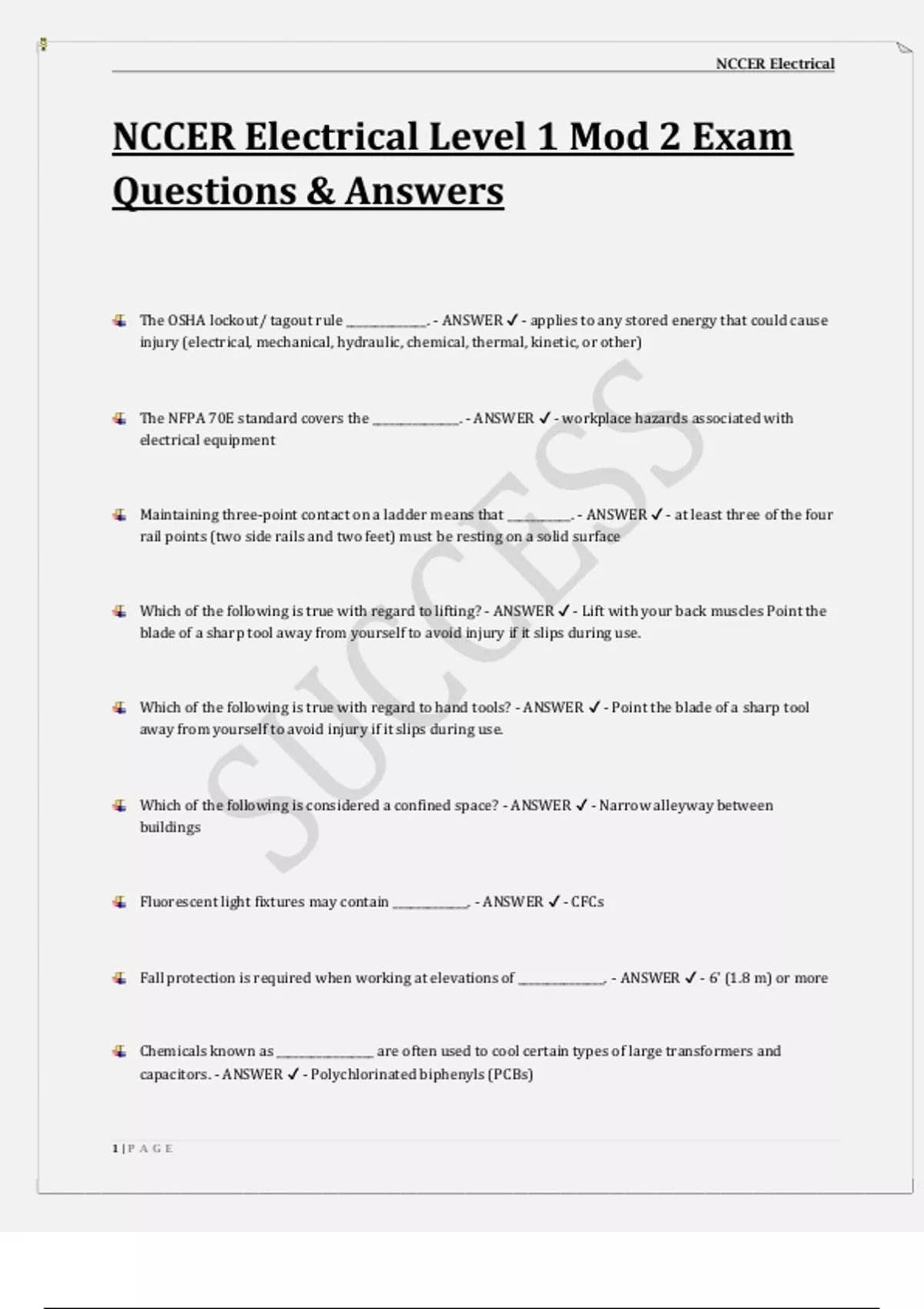 NCCER Electrical Level 1 Mod 2 Exam Questions & Answers