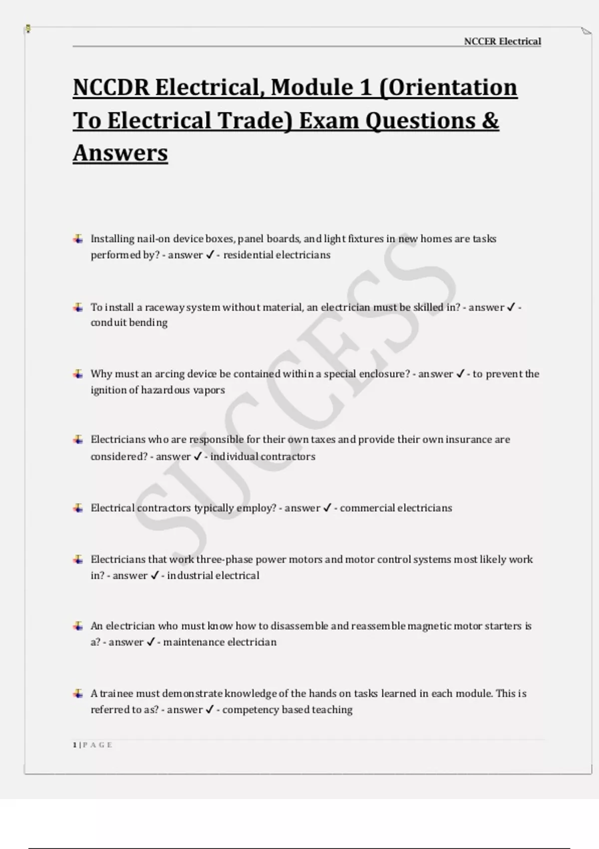 NCCDR Electrical, Module 1 (Orientation To Electrical Trade) Exam Questions & Answers