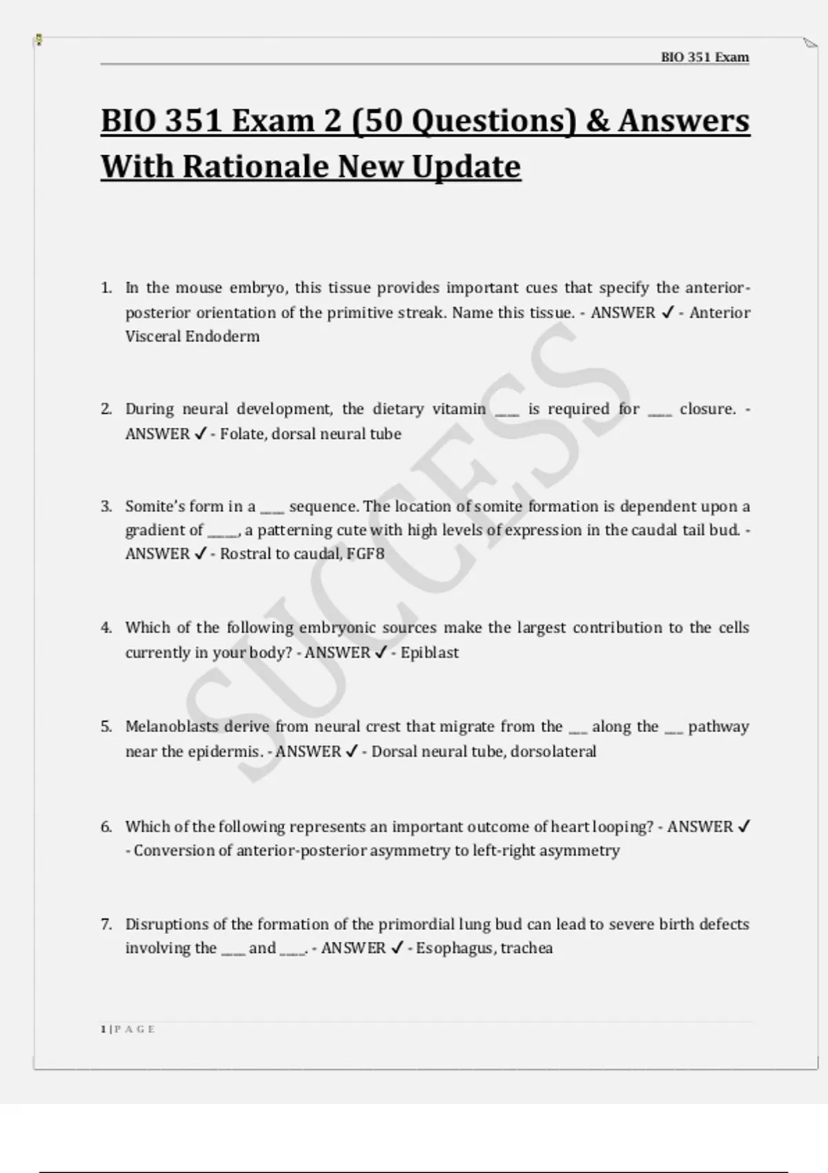 BIO 351 Exam 2 (50 Questions) & Answers New Update