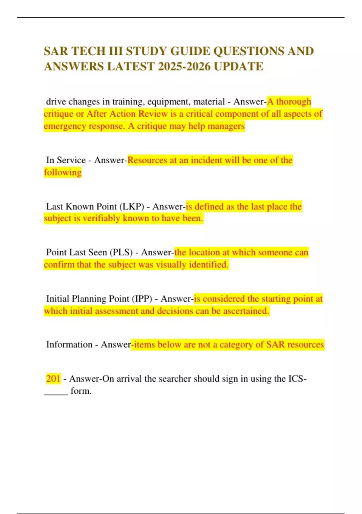 SAR TECH III STUDY GUIDE QUESTIONS AND