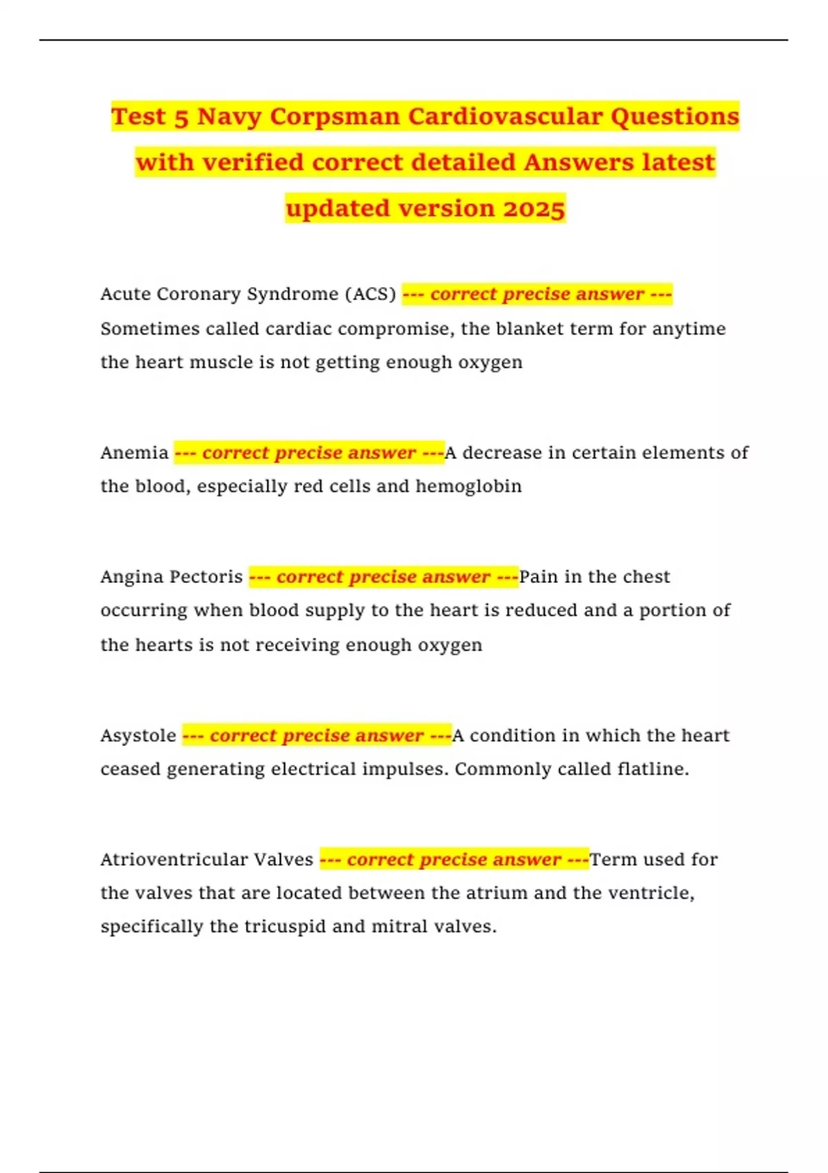 Coronary Artery Disease --- correct precise answer ---Diseases that