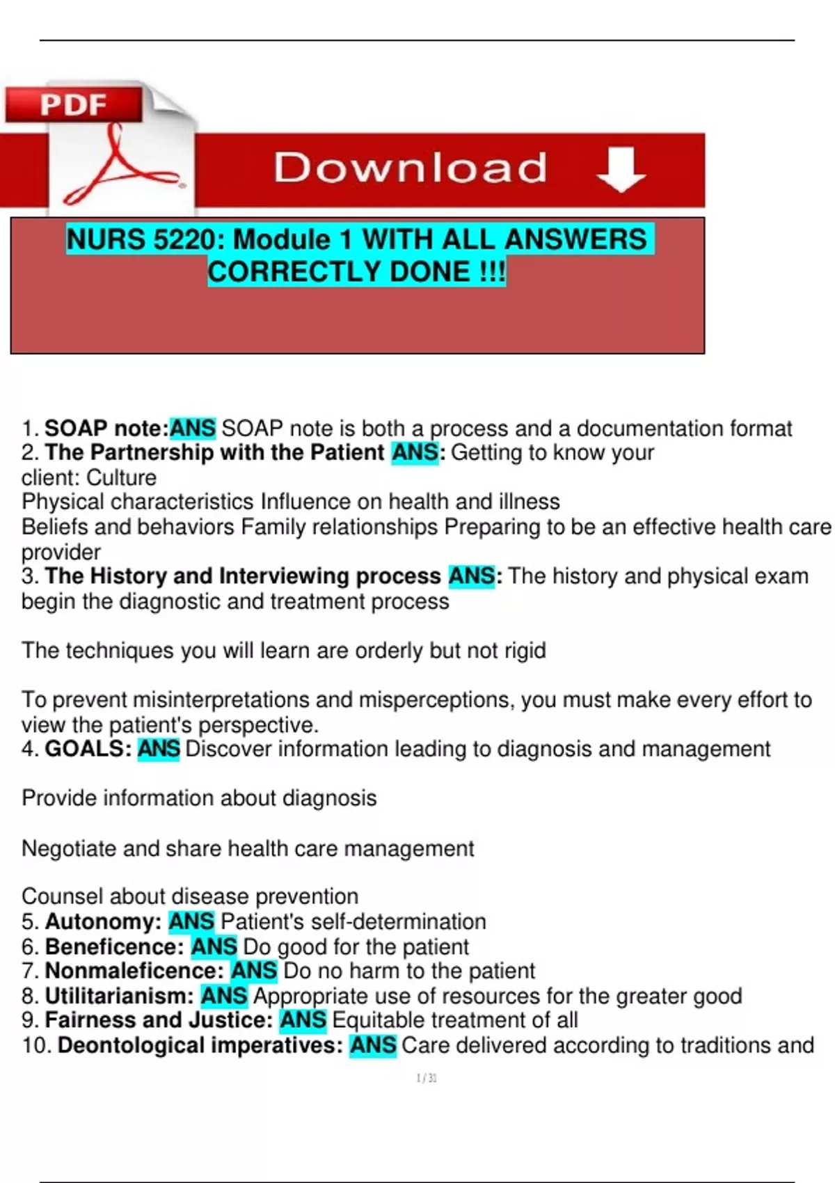 NURS 5220 Module 1 WITH ALL ANSWERS CORRECTLY DONE !!!.
