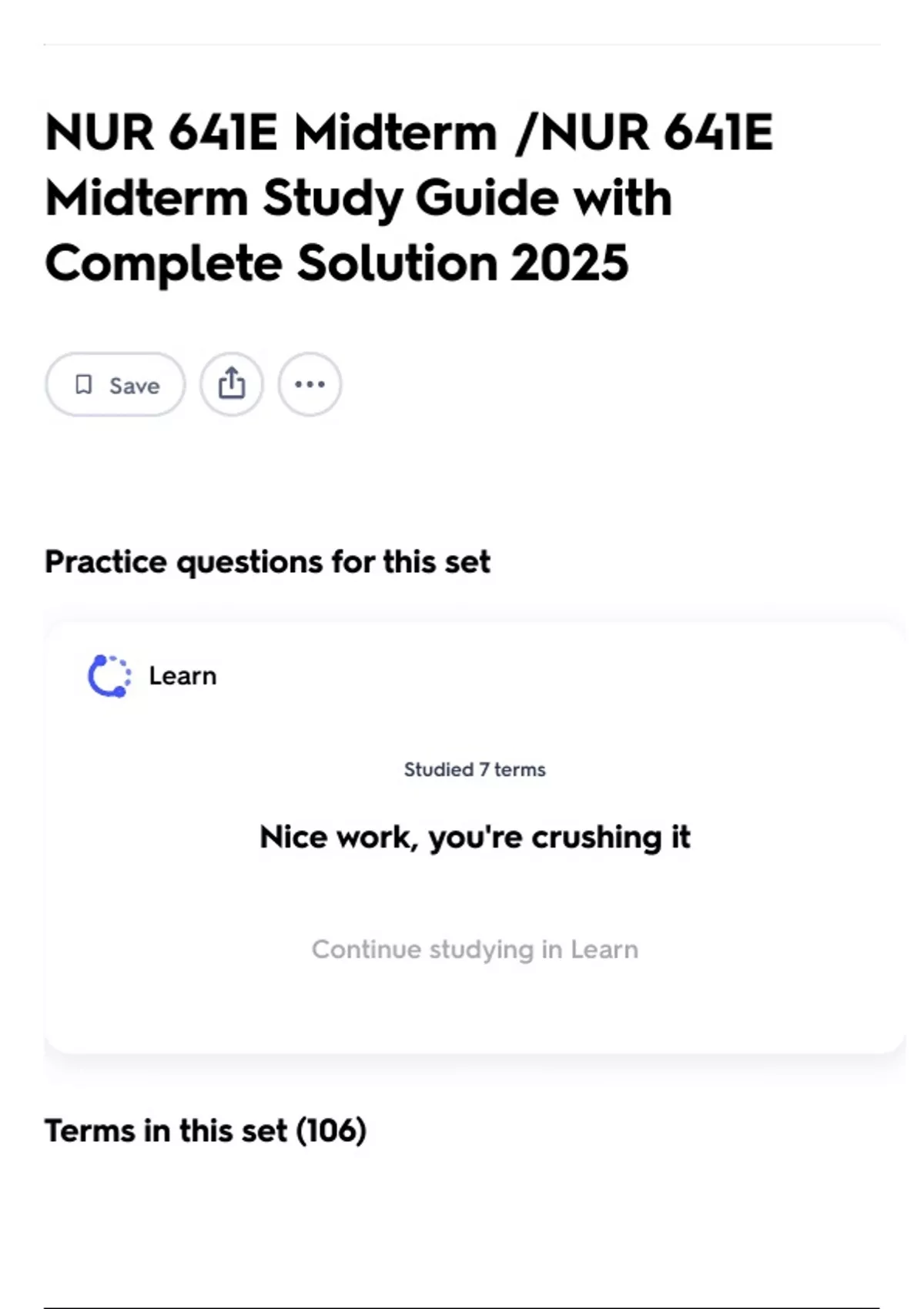 Continue studying in Learn
