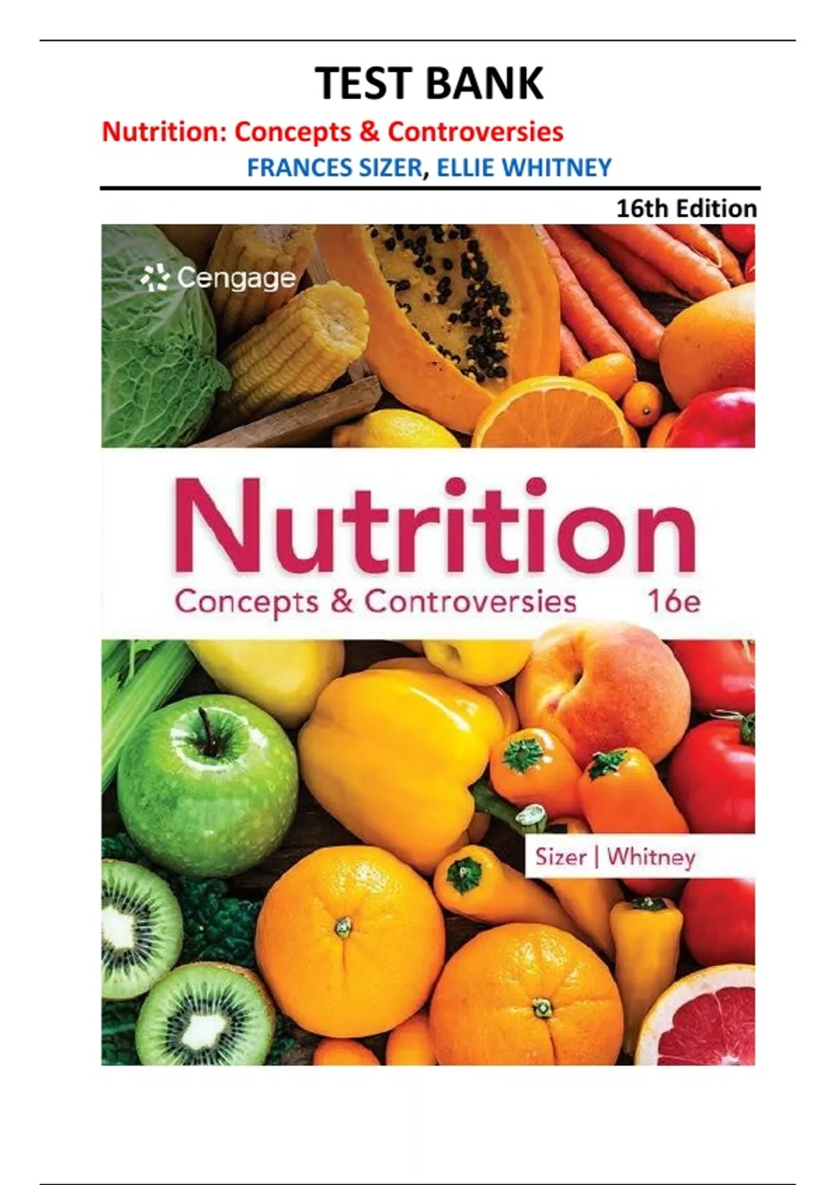 Complete TEST BANK for Nutrition: Concepts & Controversies, 16th Edition by Frances Sizer and Ellie Whitney. Includes chapter-specific multiple-choice, true/false, and case-based questions covering essential nutrition principles, health claims, and dietary controversies. Perfect for nutrition, health science, and nursing students. Download now on Stuvia for accurate, exam-focused content to strengthen your understanding of modern nutritional science.