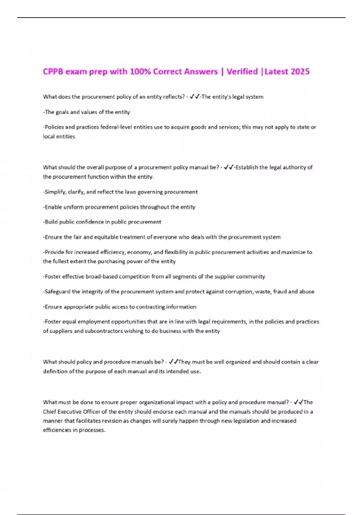 CPPB exam prep with 100% Correct Answers | Verified |Latest 2025