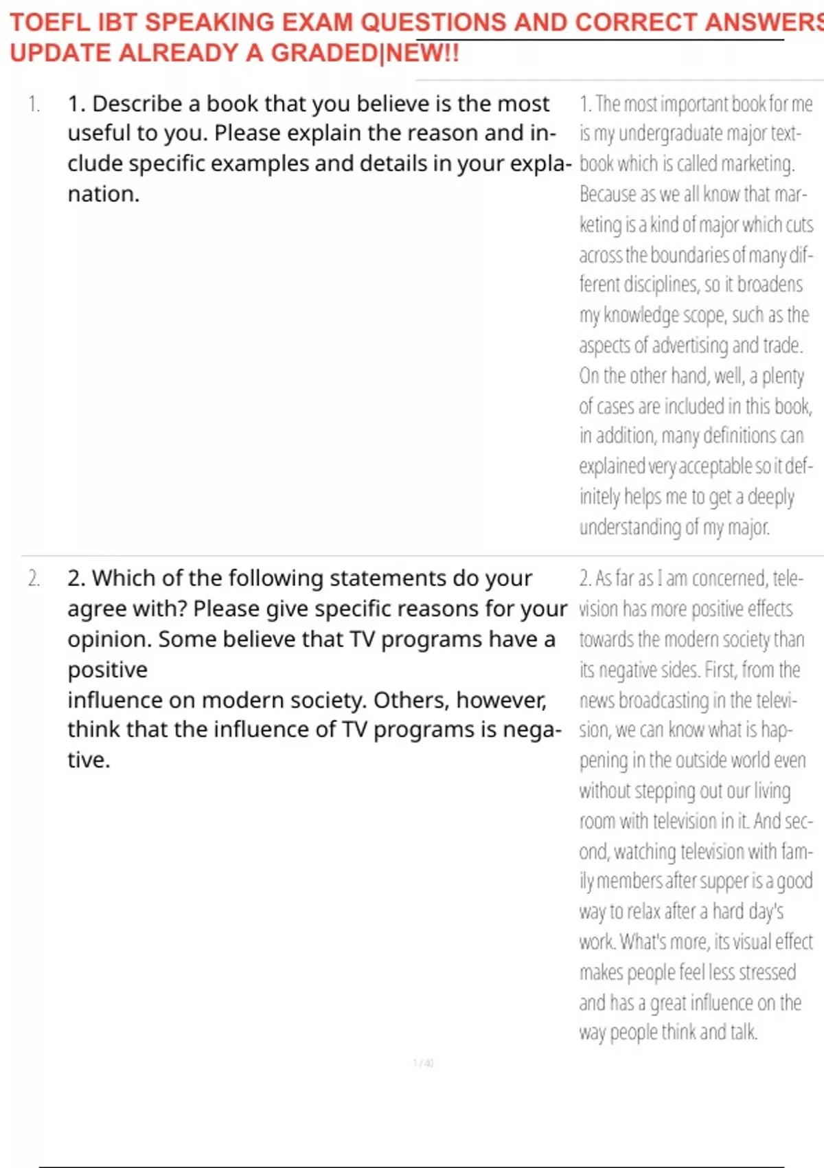 TOEFL IBT SPEAKING EXAM QUESTIONS AND CORRECT ANSWERS