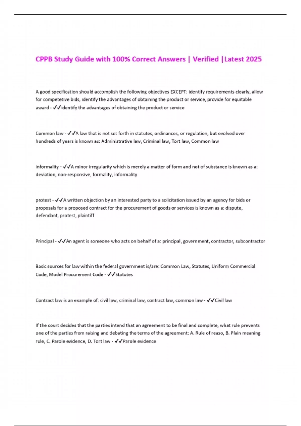 CPPB Study Guide with 100% Correct Answers | Verified |Latest 202