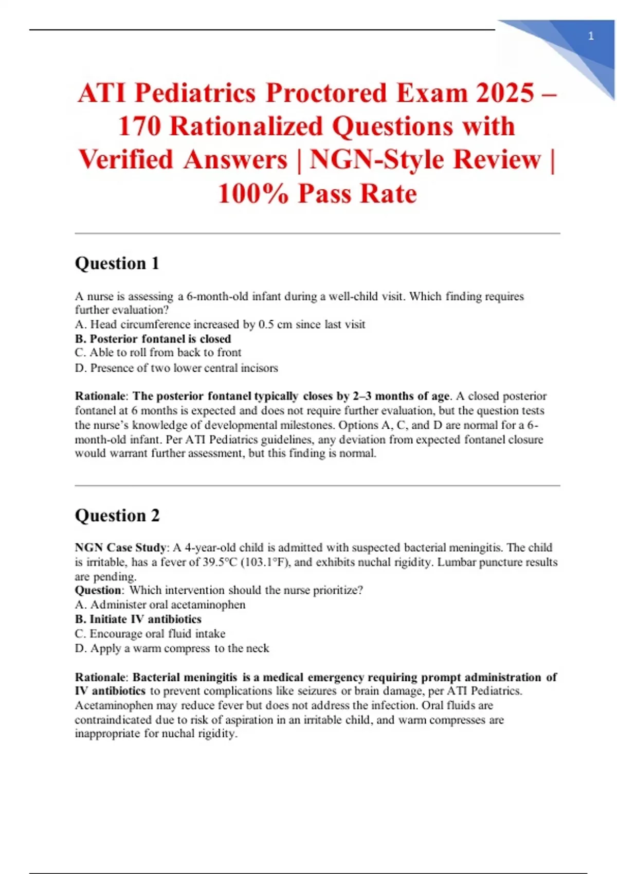 ATI Pediatrics Proctored Exam 2025 –