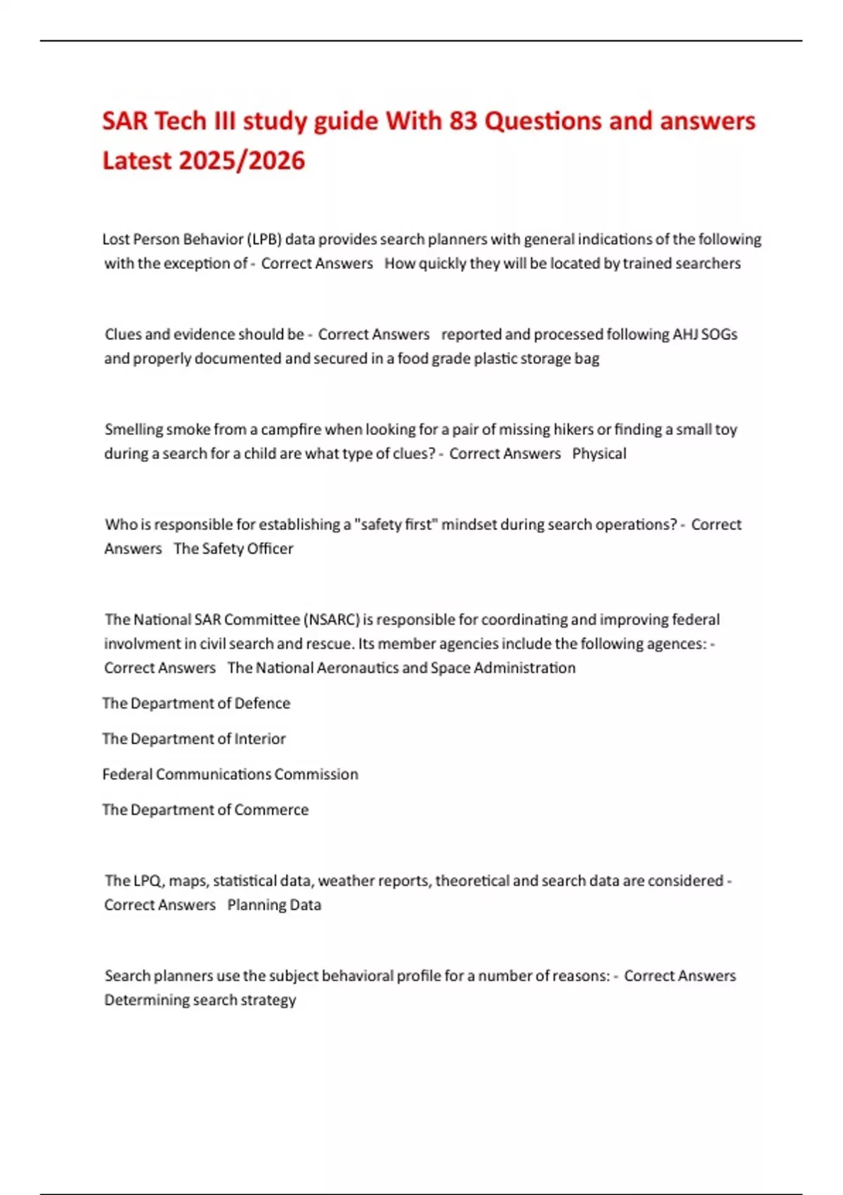 with the exception of - Correct Answers How quickly they will be located by trained searchers