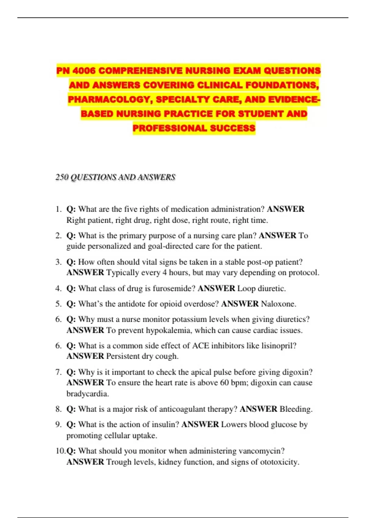 PN 4006 COMPREHENSIVE NURSING EXAM QUESTIONS