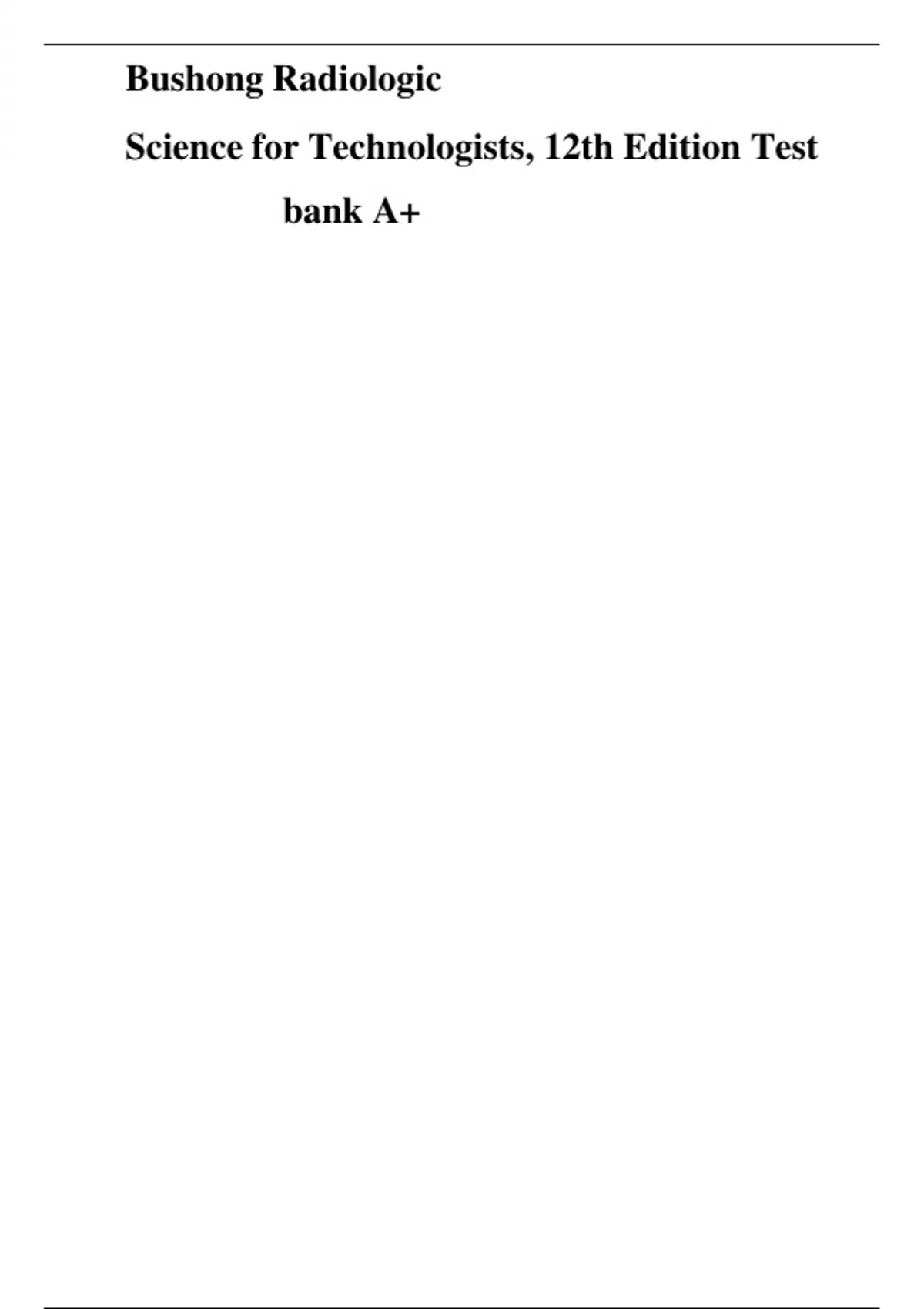This document contains a complete test bank based on the 12th edition of Radiologic Science for Technologists by Bushong. It includes a wide range of multiple-choice questions covering essential topics in radiologic science, such as imaging principles, radiation physics, safety, and equipment operation. Ideal for exam preparation and knowledge reinforcement.