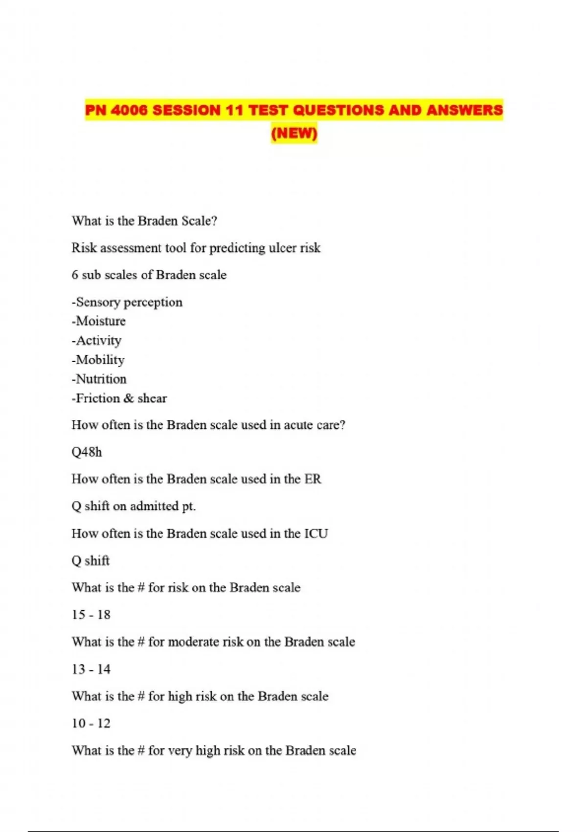 PN 4006 SESSION 11 TEST QUESTIONS AND ANSWERS (NEW)....