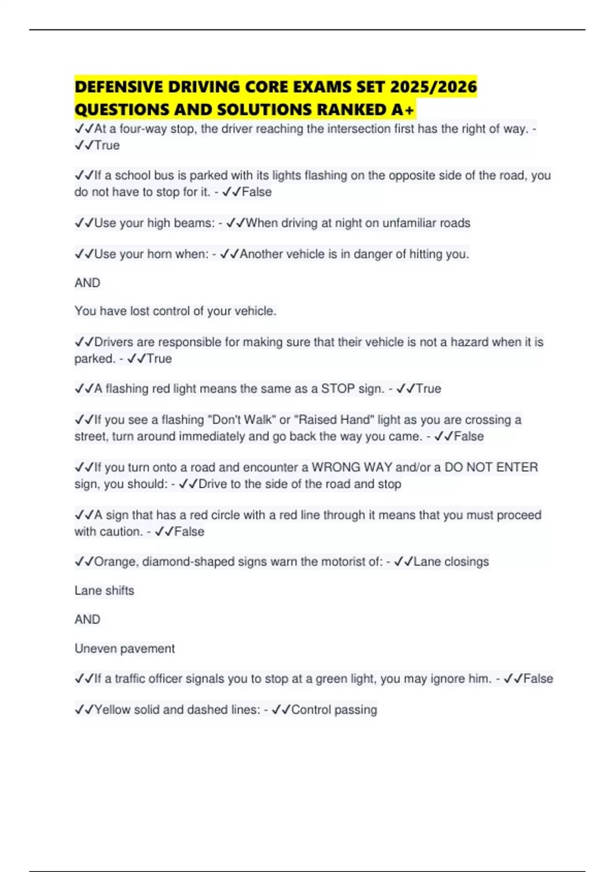 DEFENSIVE DRIVING CORE EXAMS SET 2025/2026 QUESTIONS AND SOLUTIONS RANKED A+