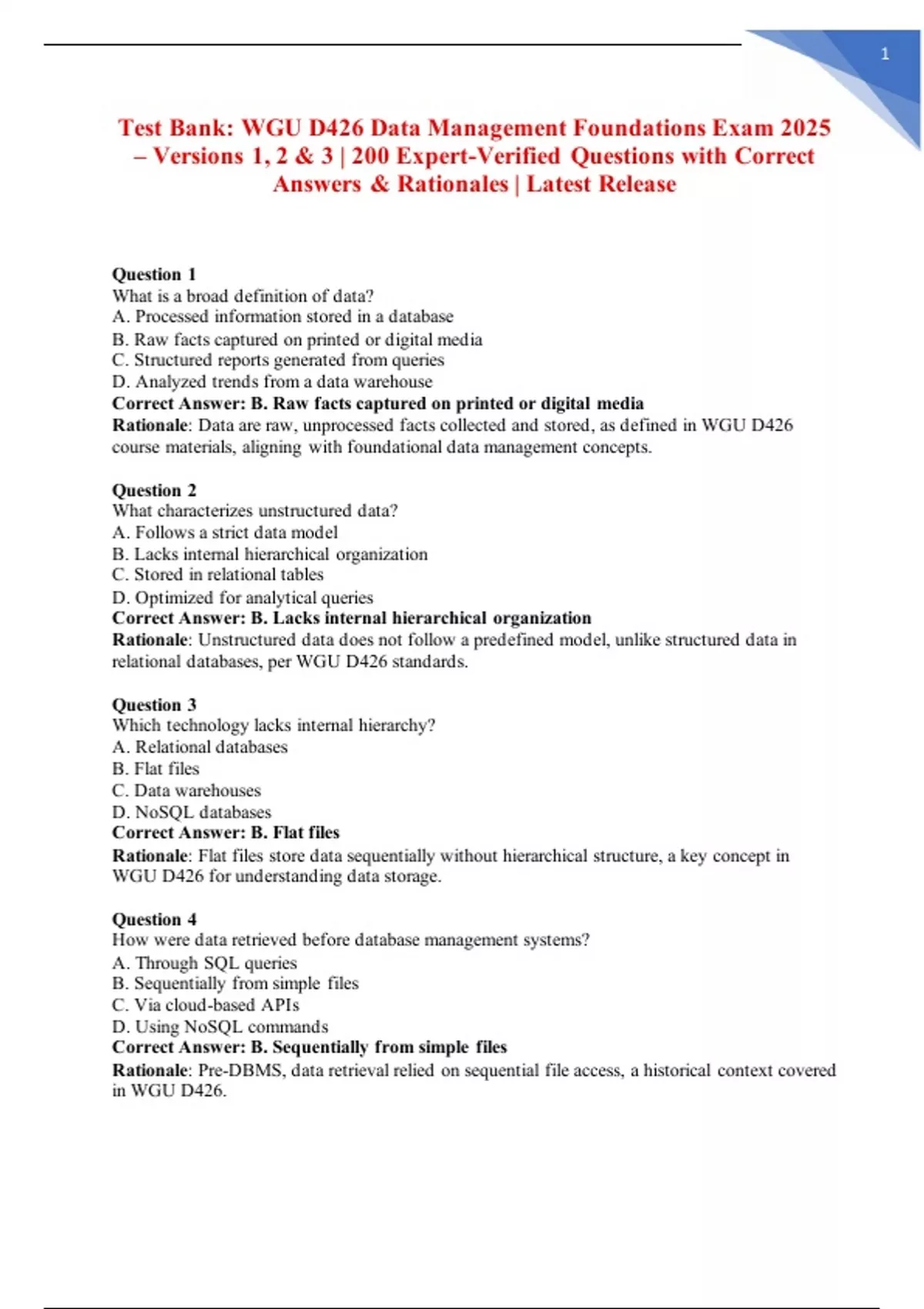 Test Bank: WGU D426 Data Management Foundations Exam 2025