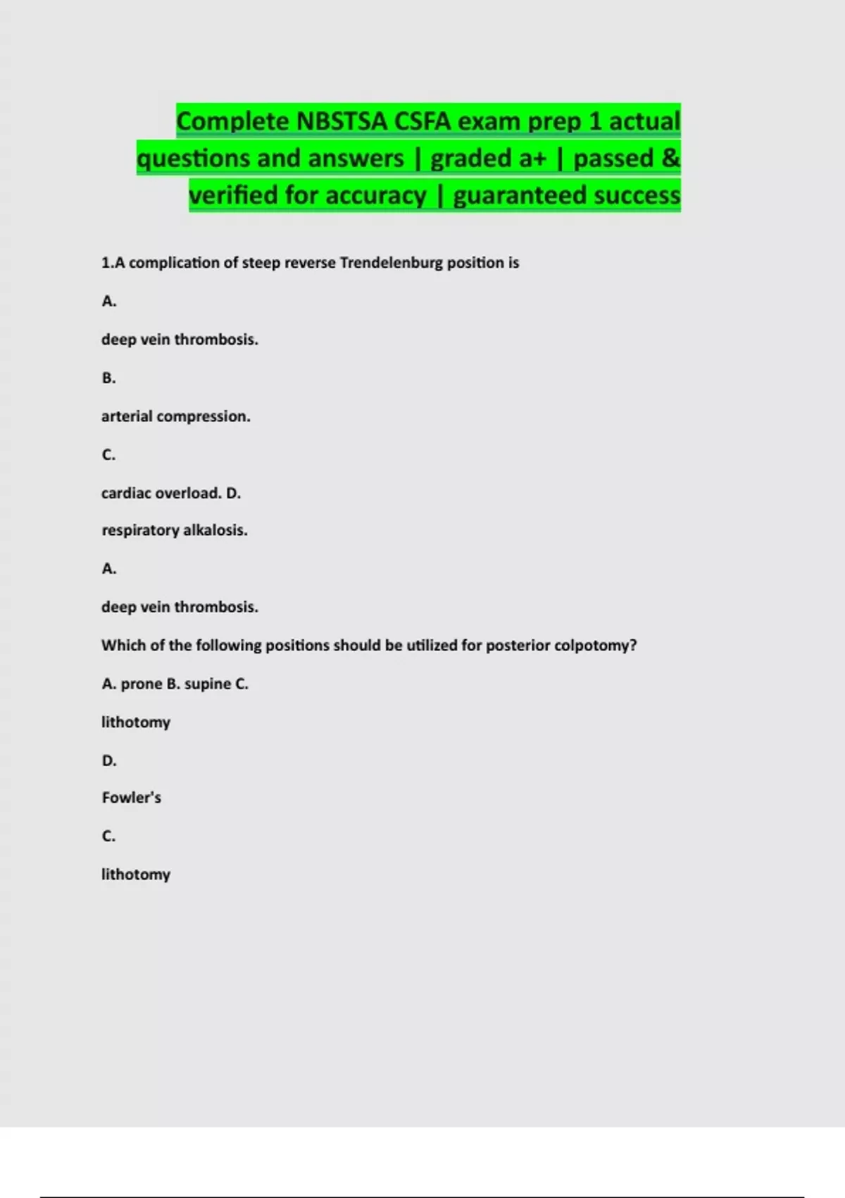 Complete NBSTSA CSFA exam prep 1 actual