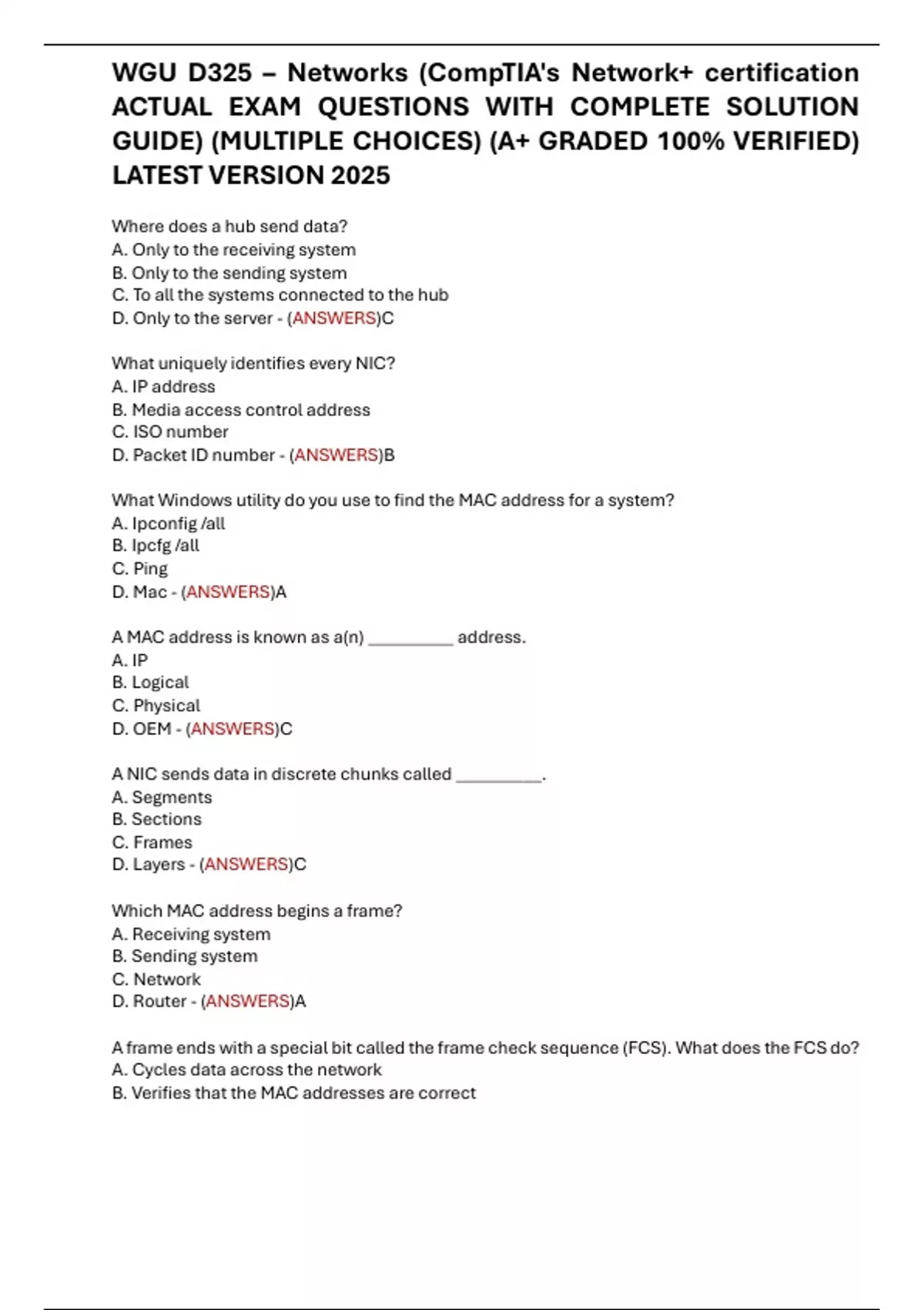 WGU D325 – Networks (CompTIA's Network+ certification ACTUAL EXAM QUESTIONS WITH COMPLETE SOLUTION GUIDE)