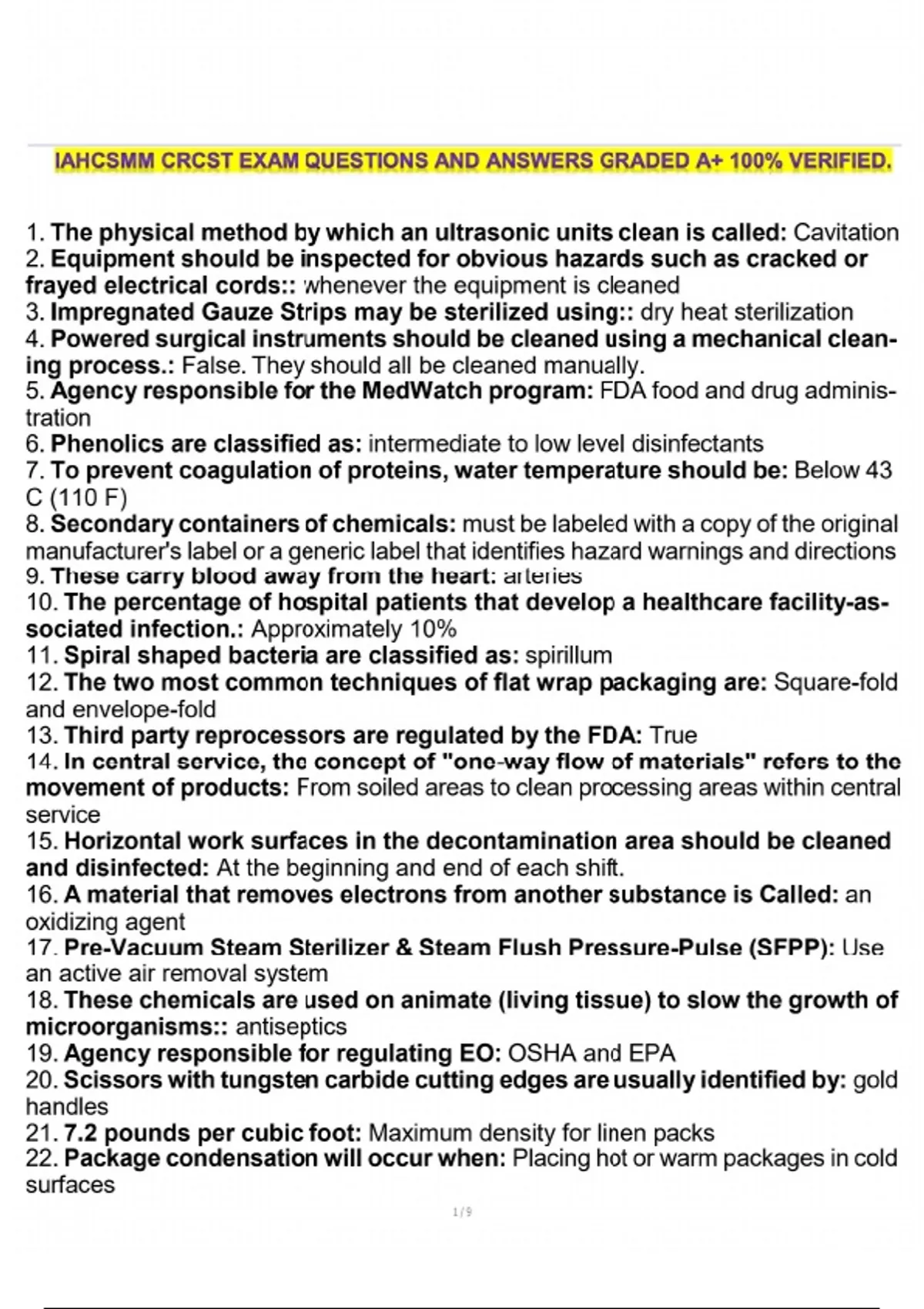 IAHCSMM CRCST EXAM QUESTIONS AND ANSWERS GRADED A+ 100% VERIFIED. IAHCSMM CRCST exam questions CRCST exam answers IAHCSMM study guide Certified Registered Central Service Technician CRCST test prep IAHCSMM exam preparation CRCST practice exam IAHCSMM exam review CRCST exam help CRCST certification exam questions IAHCSMM certification questions CRCST practice questions IAHCSMM exam practice tests CRCST questions and answers IAHCSMM mock exam CRCST exam study material IAHCSMM CRCST quiz CRCST test simulation IAHCSMM CRCST practice test CRCST exam tips IAHCSMM CRCST study plan Certified Central Service exam questions Best CRCST exam prep IAHCSMM CRCST pdf download CRCST exam online resource IAHCSMM CRCST exam guide CRCST certification study aids IAHCSMM CRCST test bank CRCST exam scoring guide IAHCSMM exam verified answers