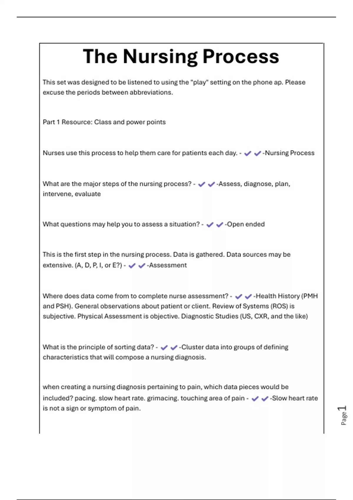 Nurses use this process to help them care for patients each day. - -Nursing Process