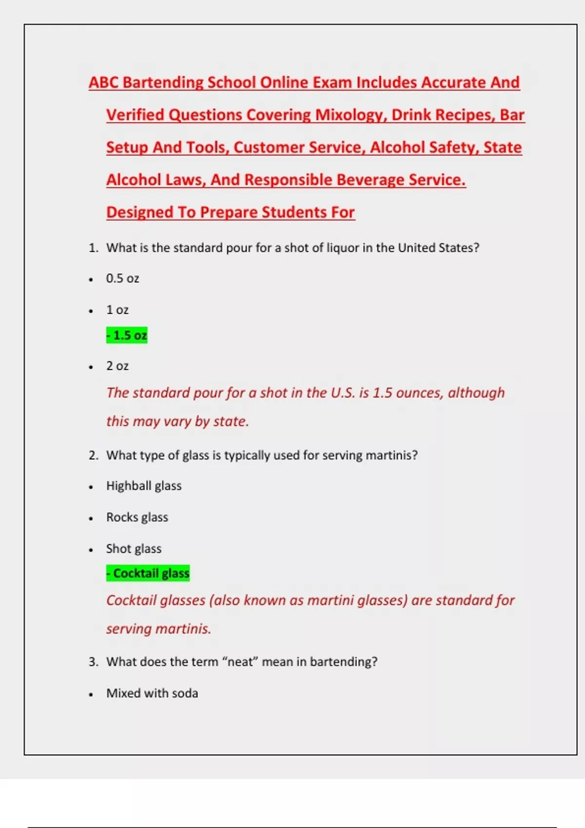 Verified Questions Covering Mixology, Drink Recipes, Bar