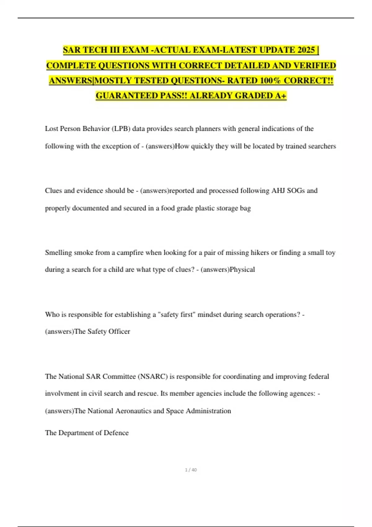 SAR TECH III EXAM -ACTUAL EXAM-LATEST UPDATE 2025 | COMPLETE QUESTIONS WITH CORRECT DETAILED AND VERIFIED ANSWERS|MOSTLY TESTED QUESTIONS- RATED 100% CORRECT!! GUARANTEED PASS!! ALREADY GRADED A+