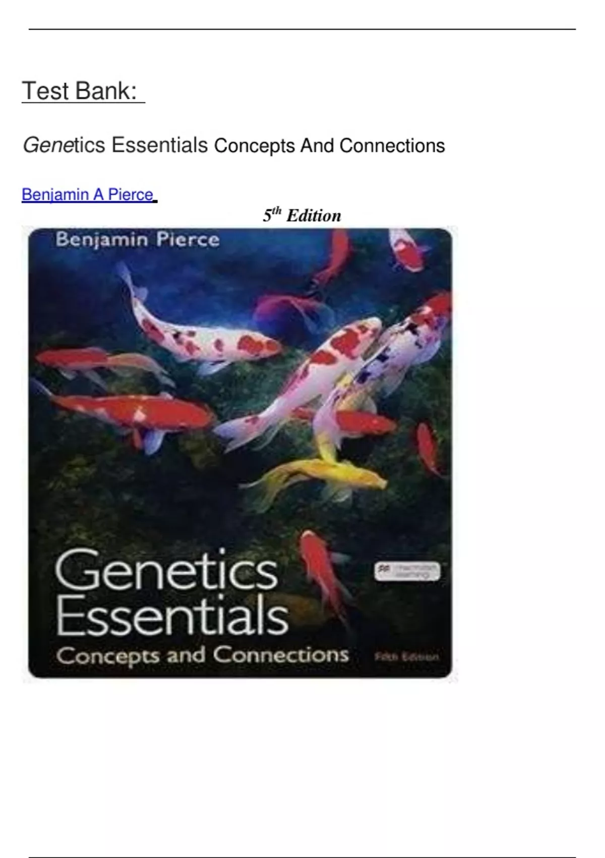 Test Bank for Genetics Essentials: Concepts and Connections, 5th Edition by Benjamin A. Pierce| All Chapters 1-18|LATEST