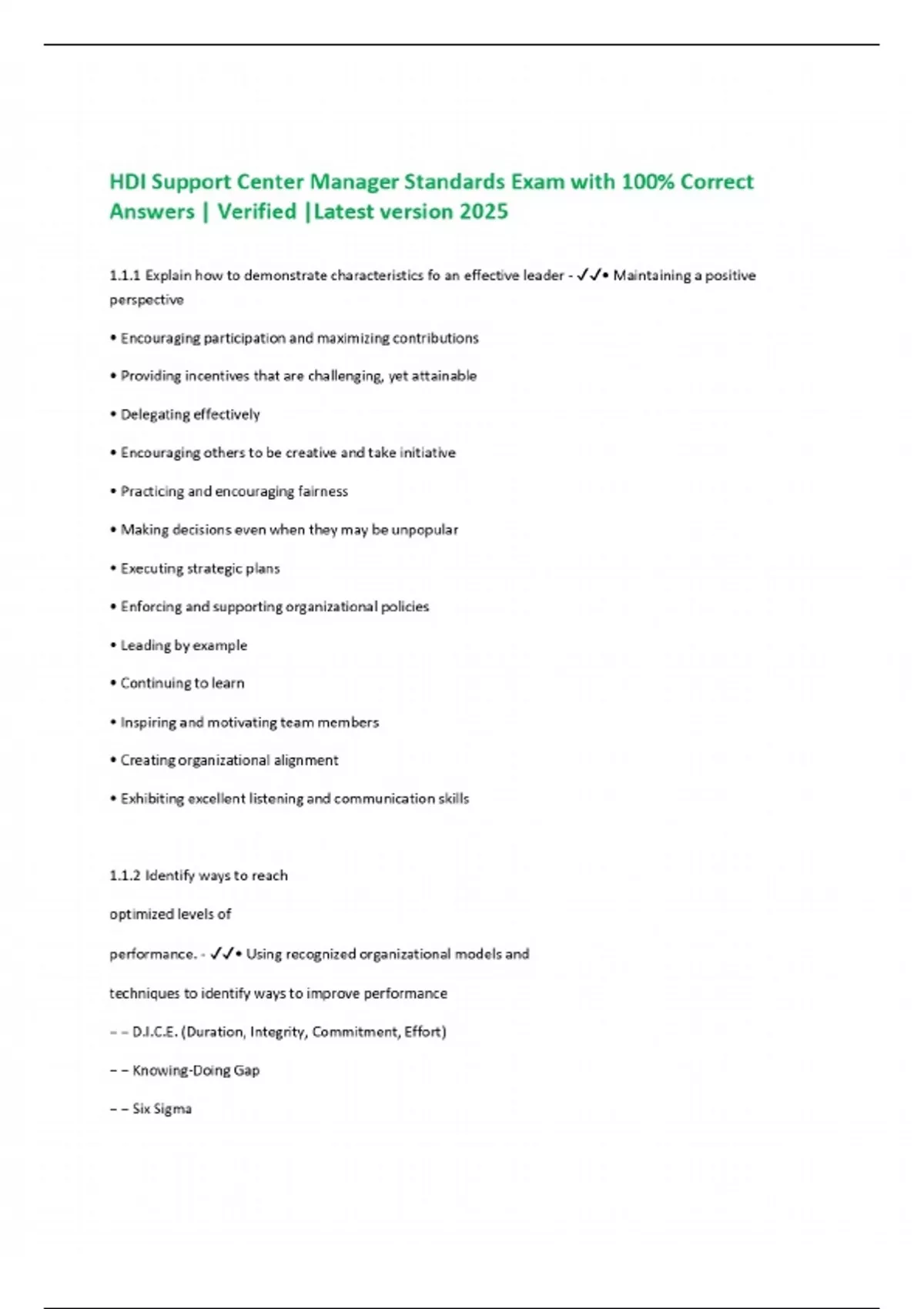 HDI Support Center Manager Standards Exam with 100% Correct Answers | Verified |Latest version 2025