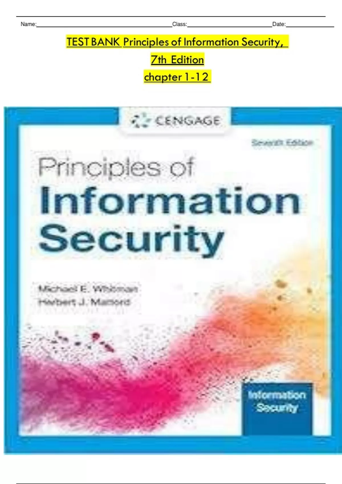 Course Whitman, Principles of Information Security