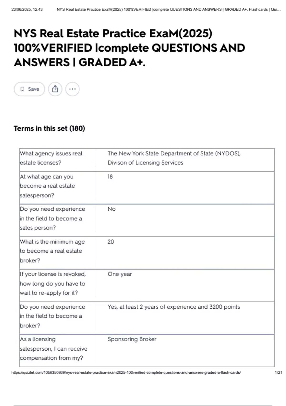 , 23/06/2025, 12:43 NYS Real Estate Practice ExaM(2025) 100%VERIFIED |complete QUESTIONS AND ANSWERS | GRADED A+. Flashcards | Qui…