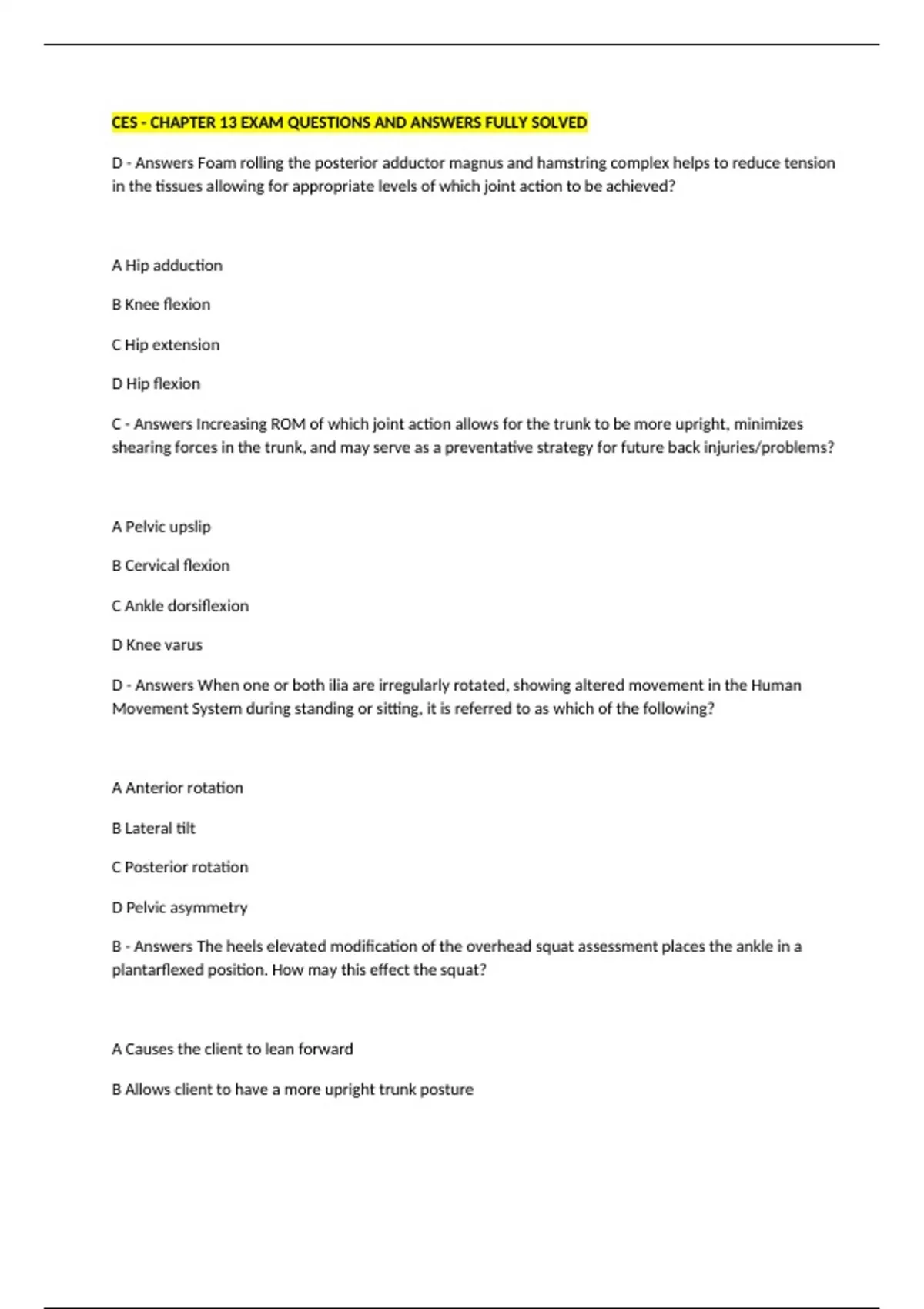 C - Answers Increasing ROM of which joint action allows for the trunk to be more upright, minimizes