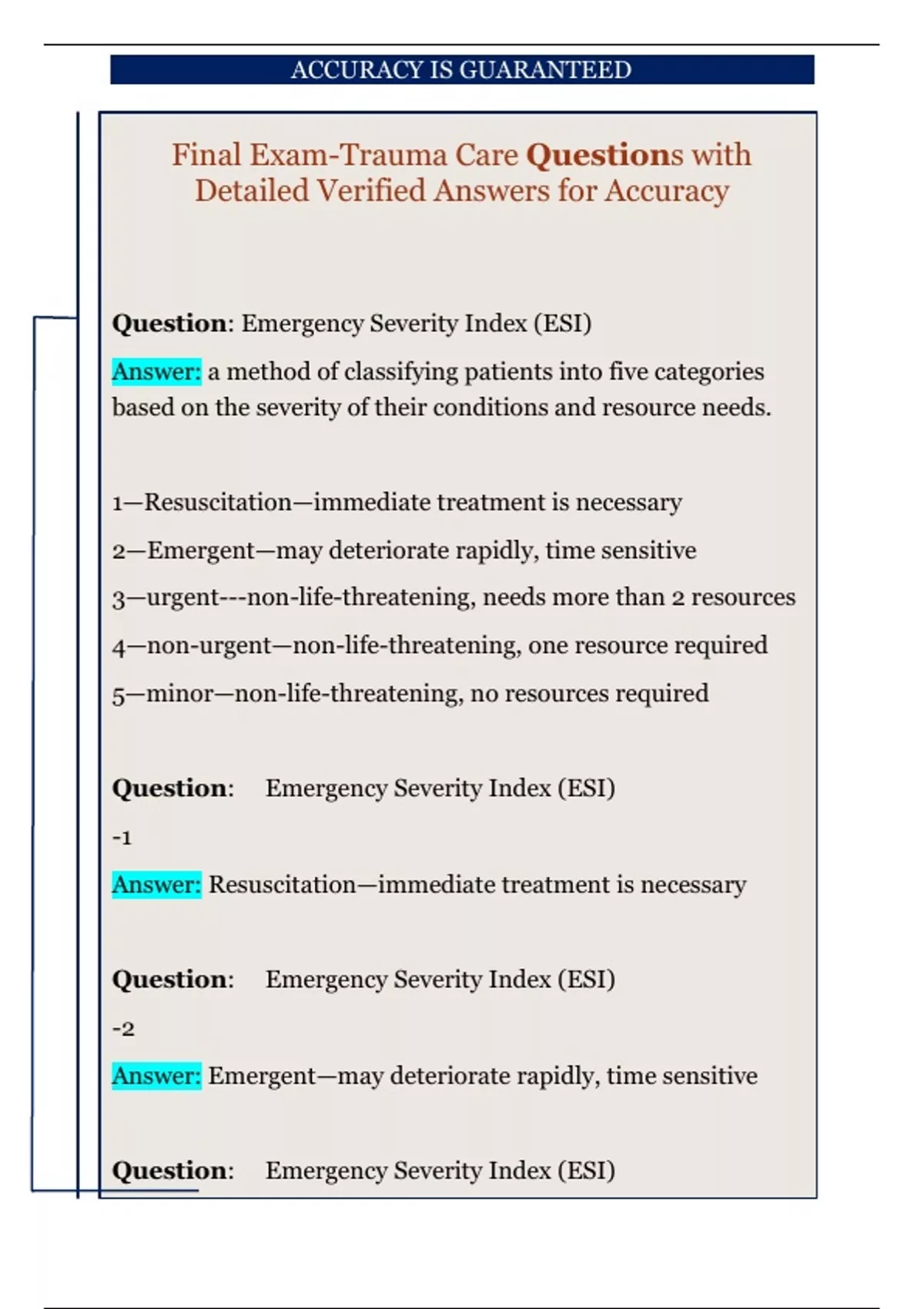 Final Exam-Trauma Care Questions with