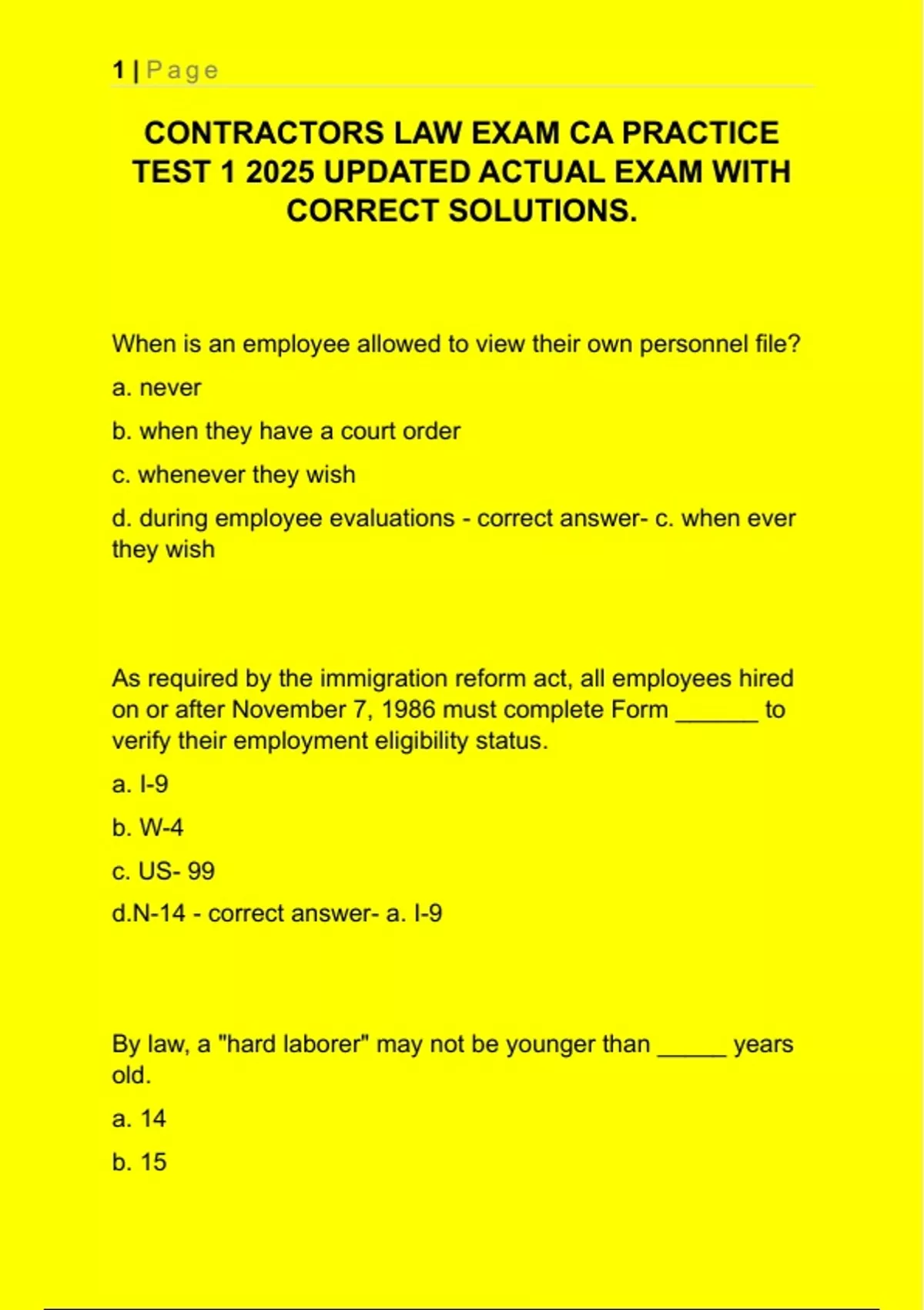 CONTRACTORS LAW EXAM CA PRACTICE TEST 1 2025 UPDATED ACTUAL EXAM WITH CORRECT SOLUTIONS.
