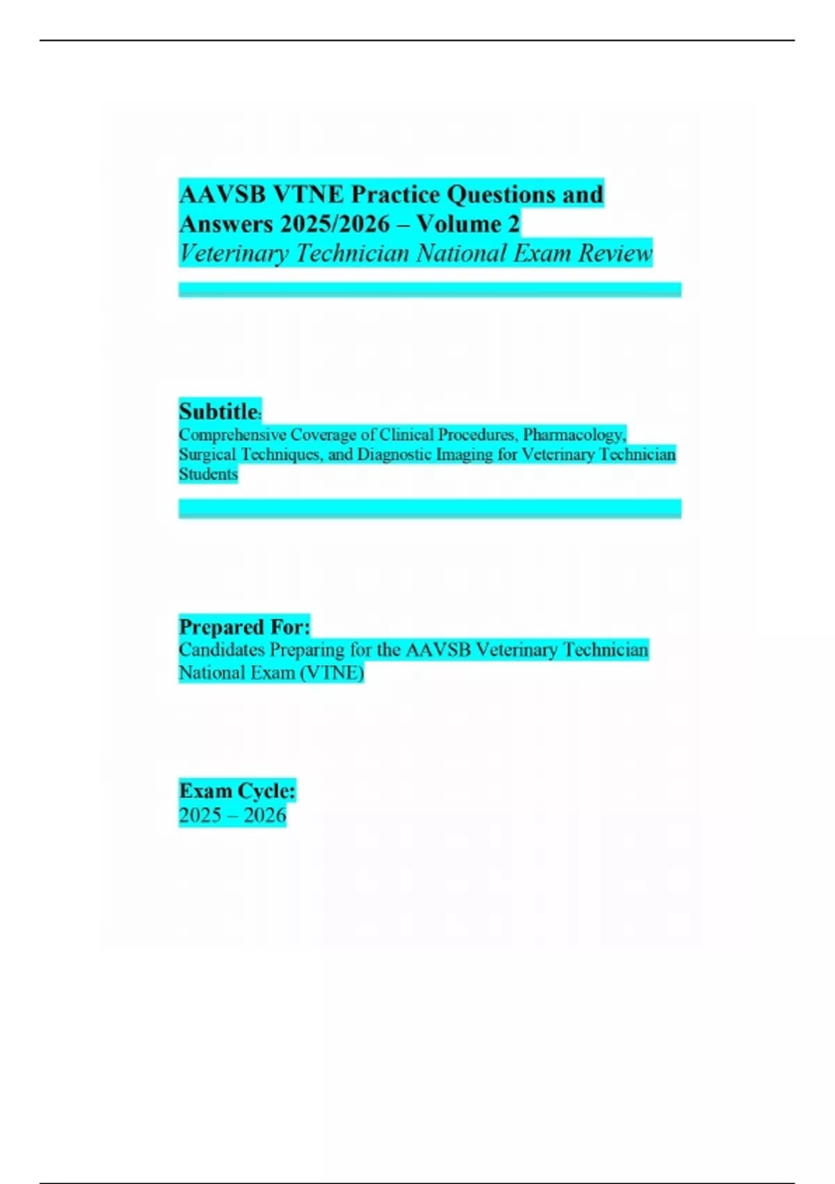 AAVSB VTNE Practice Questions and Answers 2025/2026 – Volume 2: Veterinary Technician National Exam Review with Clinical, Pharmacological, Surgical, and Diagnostic Topics.