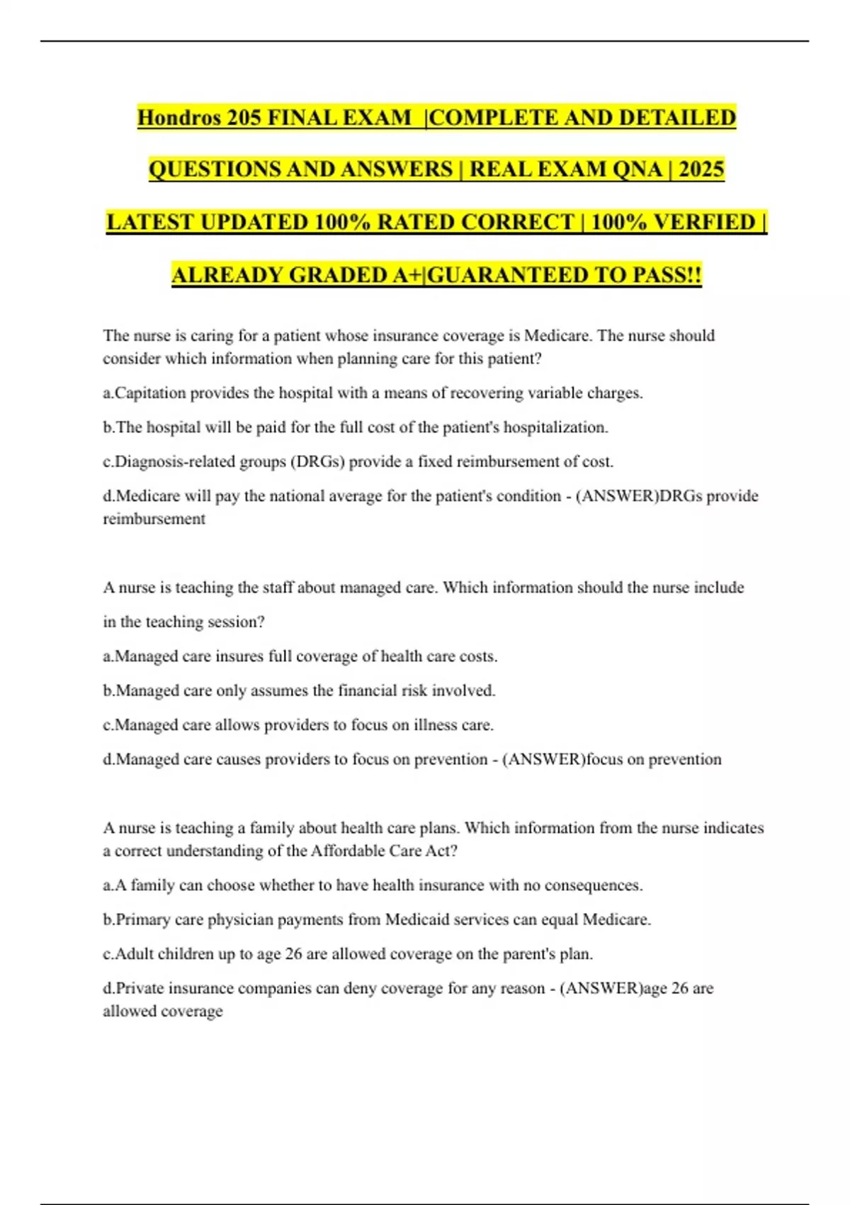 ALREADY GRADED A+|GUARANTEED TO PASS!!