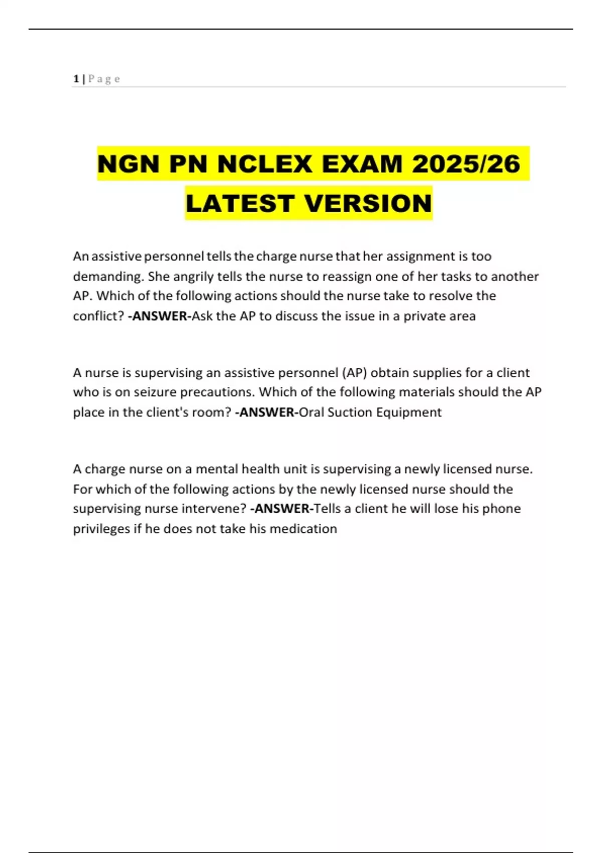 NGN PN NCLEX EXAM 2025/26 LATEST VERSION