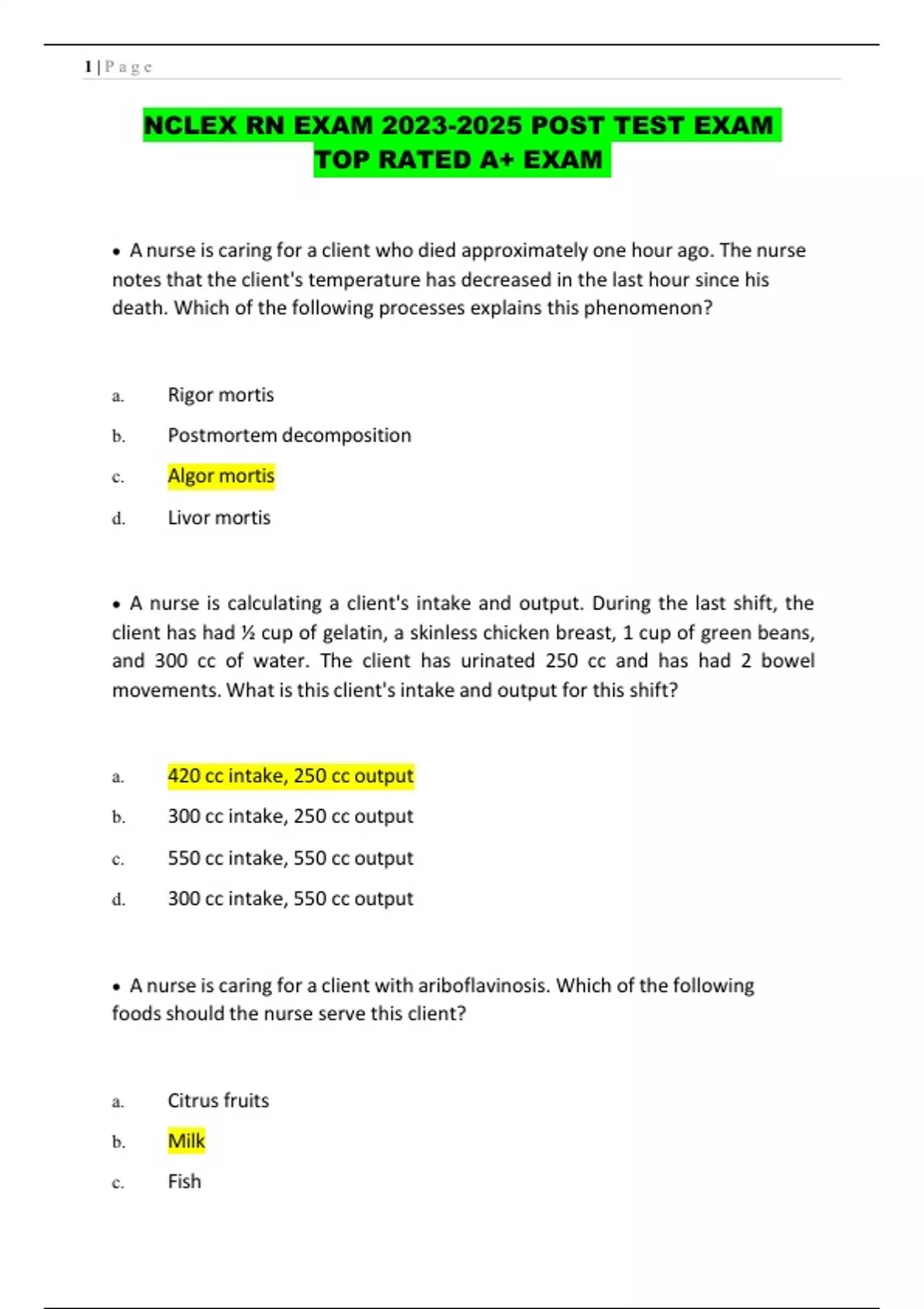 NCLEX RN EXAM POST TEST EXAM TOP RATED A+ EXAM