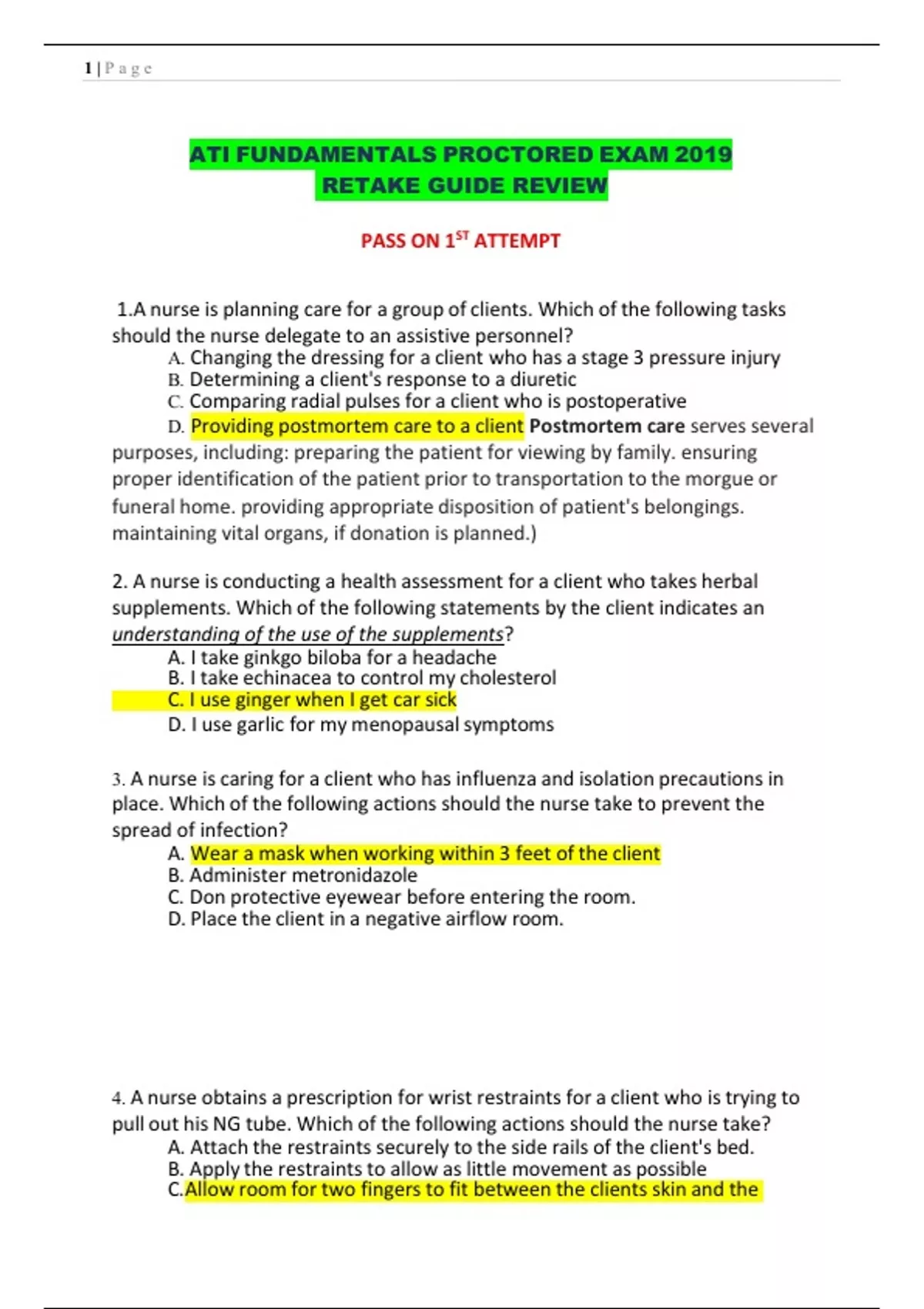 ATI FUNDAMENTALS PROCTORED EXAM 2019