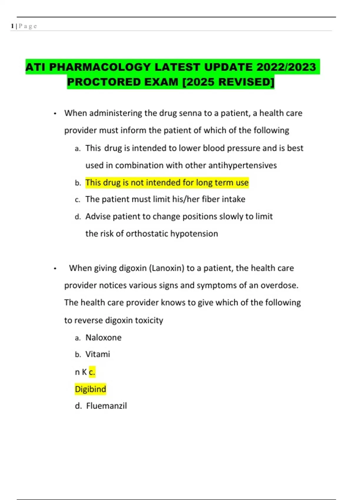 ATI PHARMACOLOGY LATEST UPDATE 2022/2023 PROCTORED EXAM [2025 REVISED]