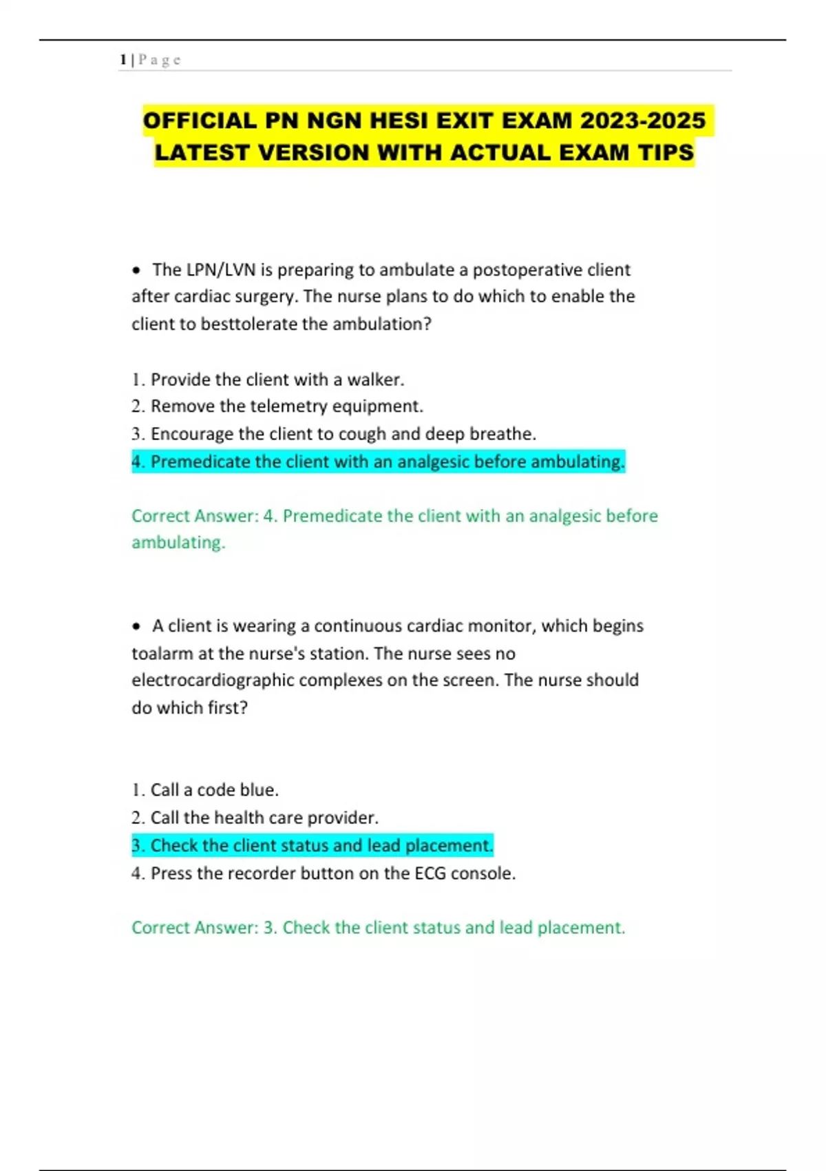 PN NGN HESI EXIT EXAM LATEST VERSION WITH ACTUAL EXAM TIPS