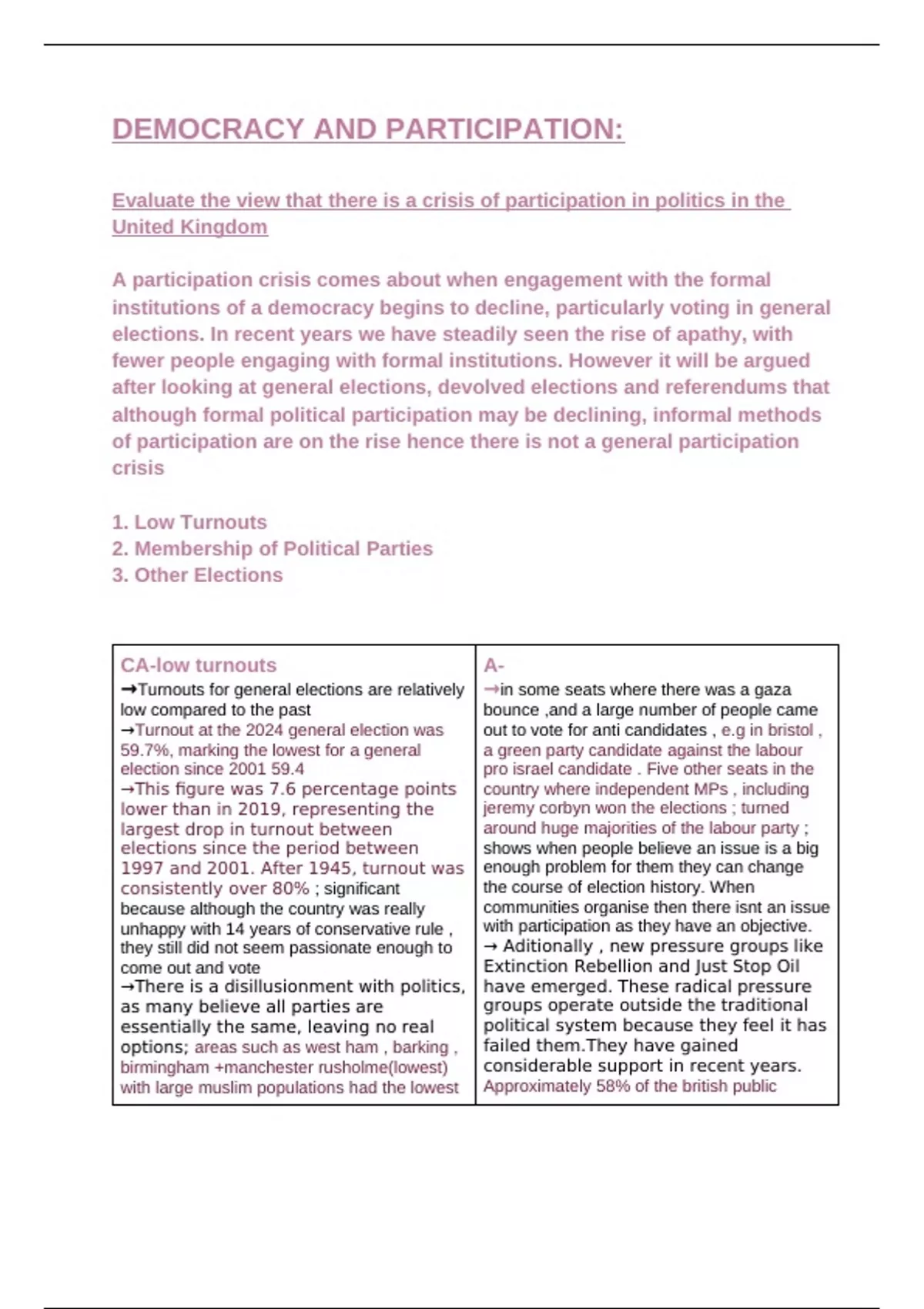 Democracy and participation essay plans