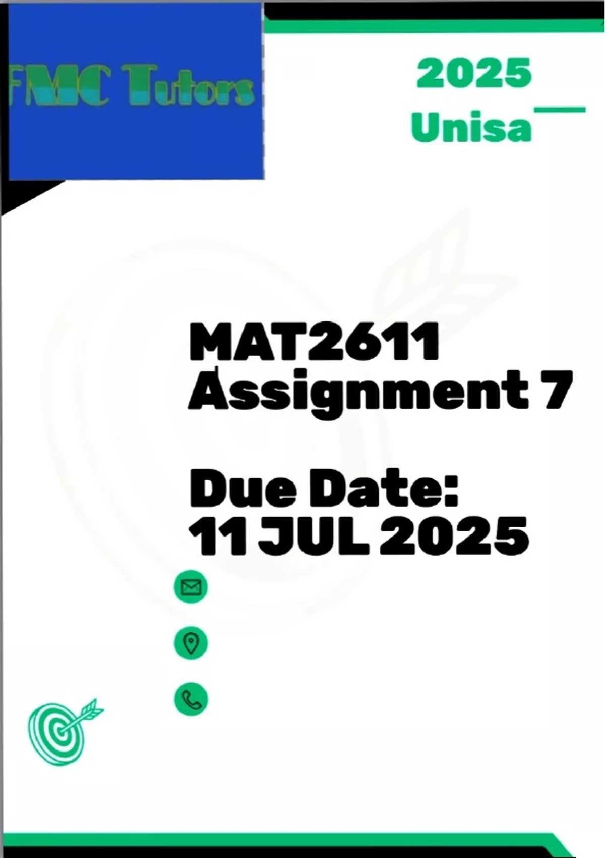 MAT2611 assignment 7 completed and detailed solutions 2025 Unisa. Excellent solution that shows every detailed step by step in how to derive every mathematical expression using your algebra theory and computations and really shows it in details and this is how to expect it in the exam.This is a course that you must make sure you master the assignments . This will let you master this concept and assure you ace these examples in the example. Great solution document and 100 % guaranteed