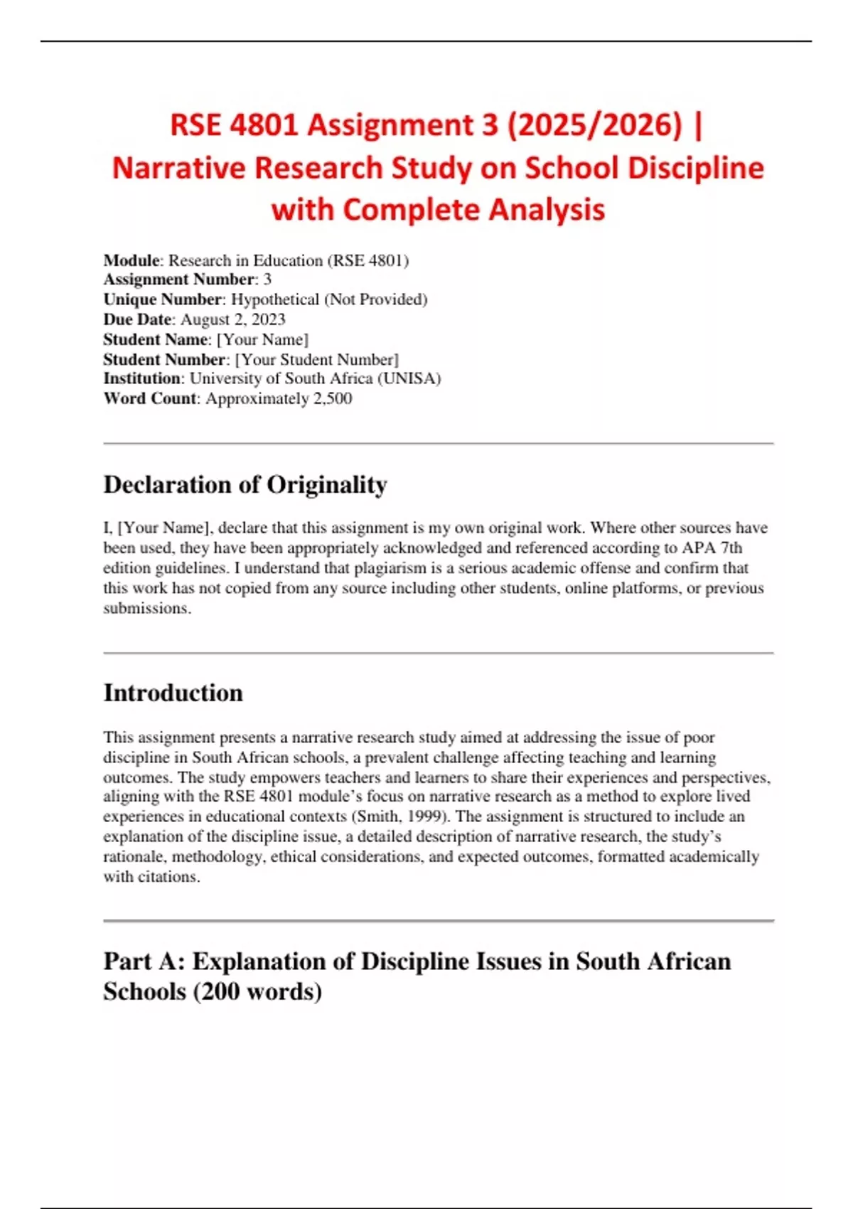 RSE 4801 Assignment 3 (2025/2026) | Narrative Research Study on School Discipline with Complete Analysis