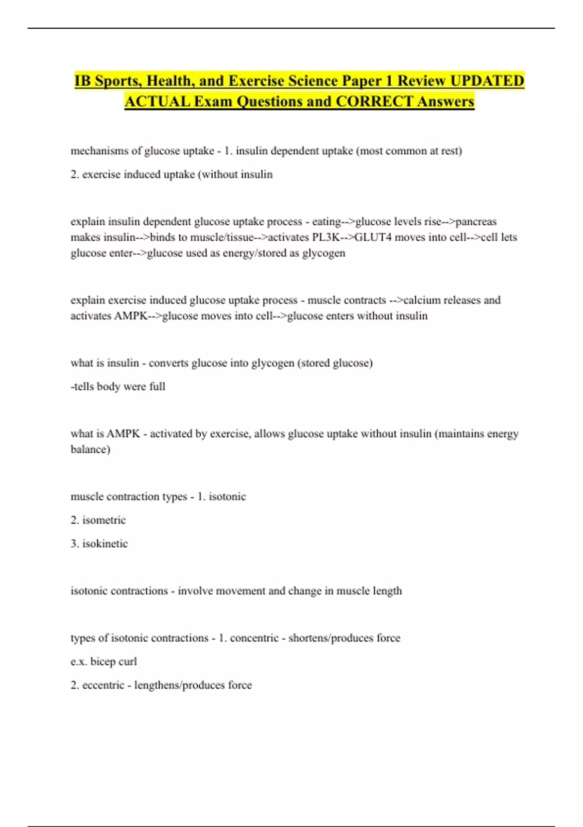 IB Sports, Health, and Exercise Science Paper 1 Review UPDATED