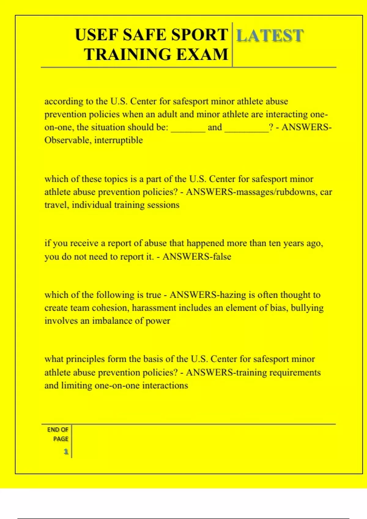 USEF SAFE SPORT TRAINING EXAM QUESTIONS AND ANSWERS 2025