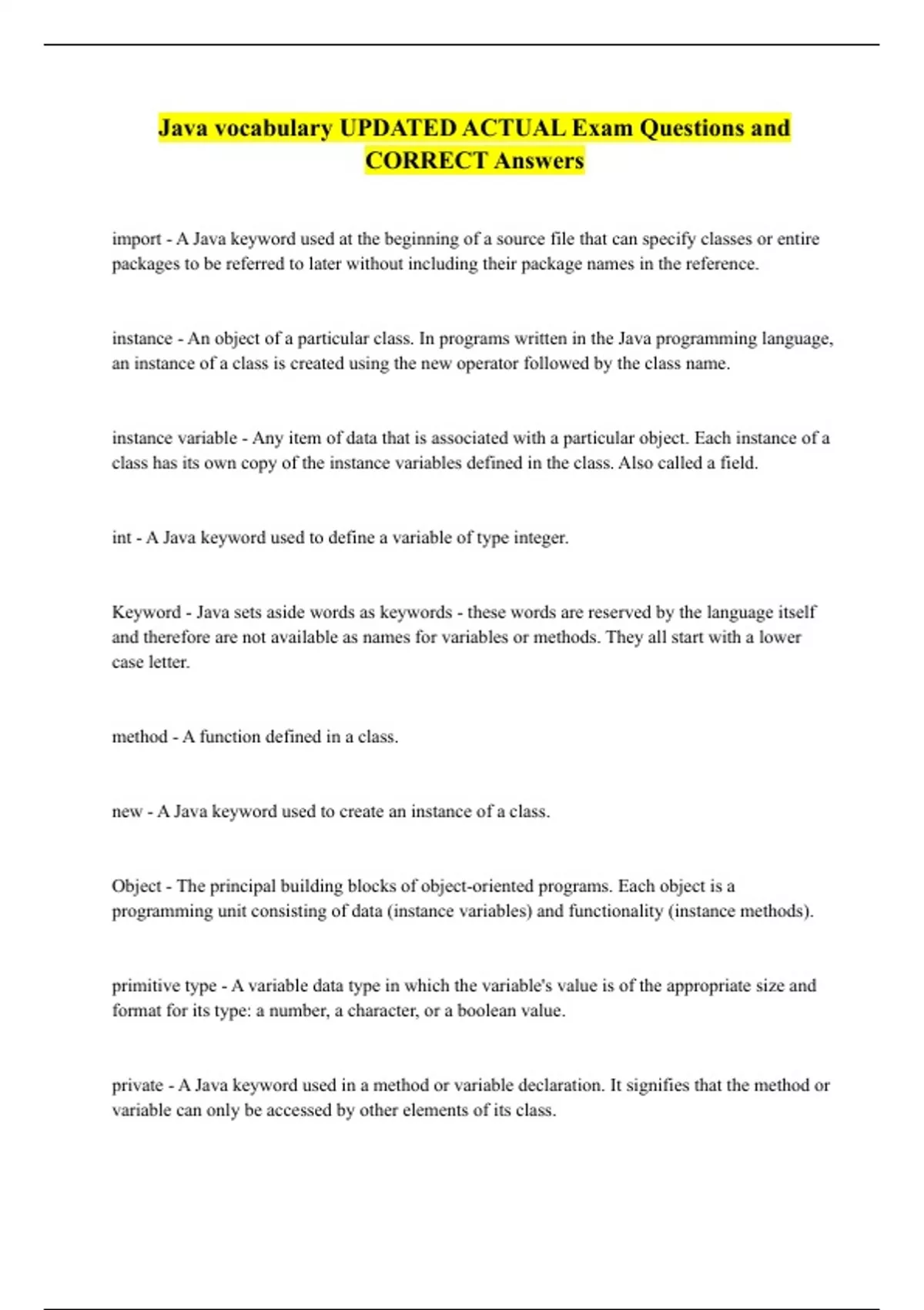Java vocabulary UPDATED ACTUAL Exam Questions and