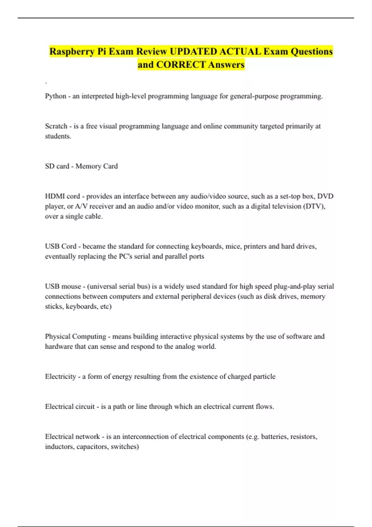 Raspberry Pi Exam Review UPDATED ACTUAL Exam Questions and CORRECT Answers