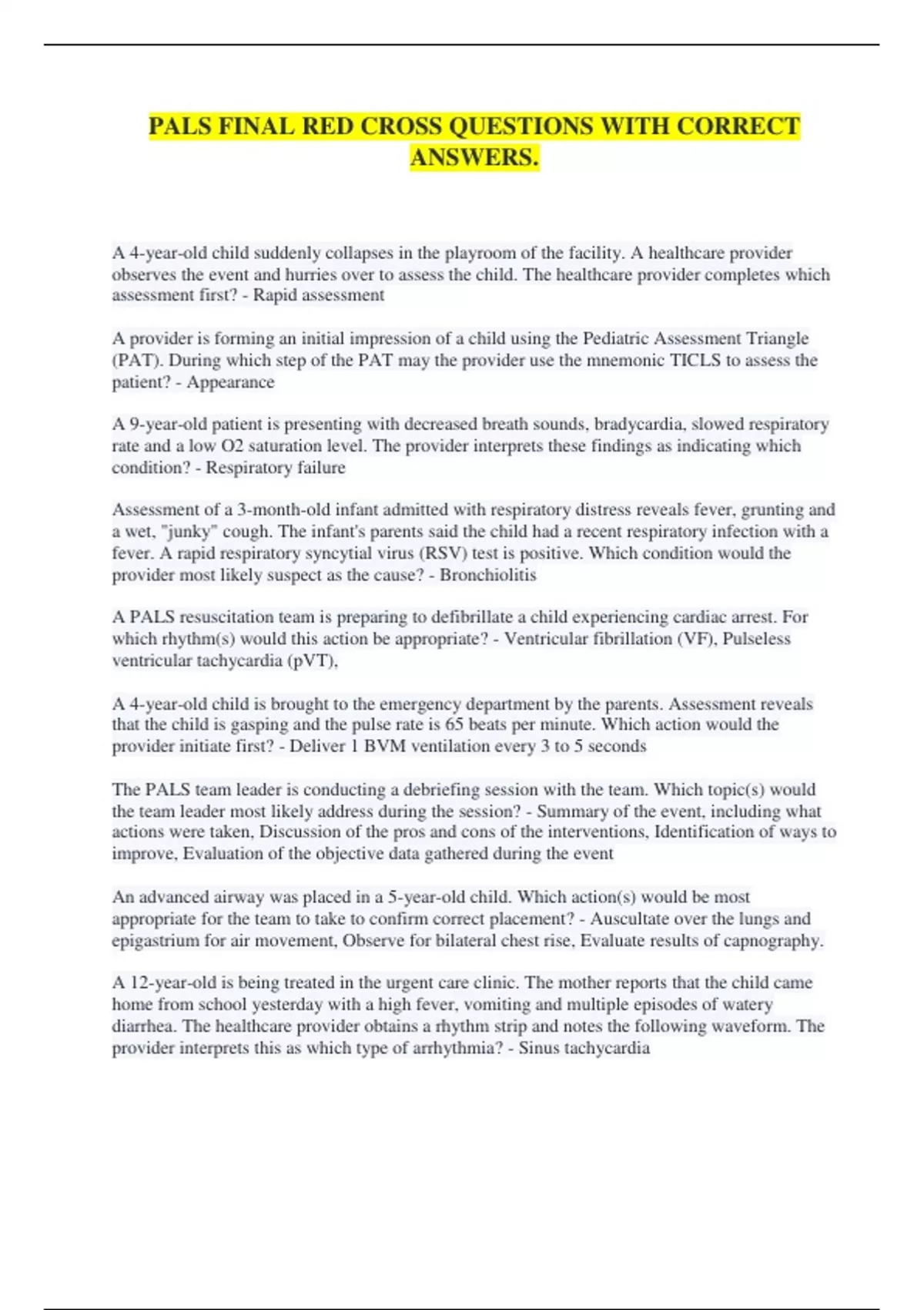 PALS FINAL RED CROSS QUESTIONS WITH CORRECT