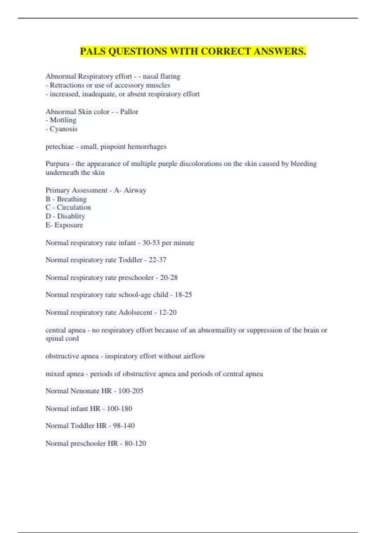 PALS QUESTIONS WITH CORRECT ANSWERS.