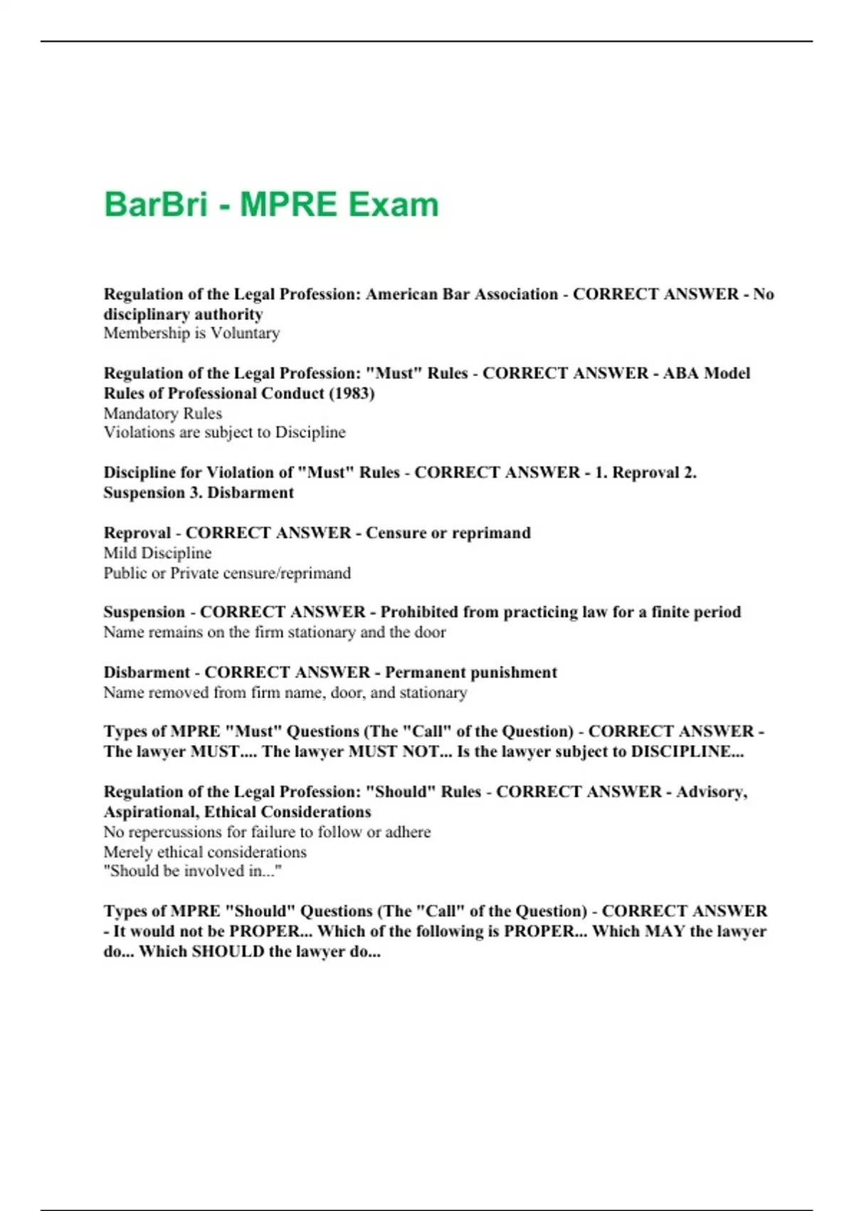 Types of MPRE "Should" Questions (The "Call" of the Question) - CORRECT ANSWER
